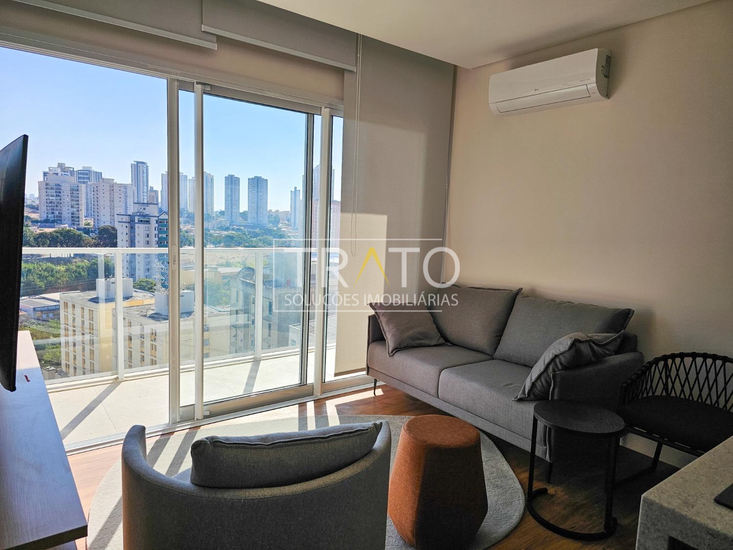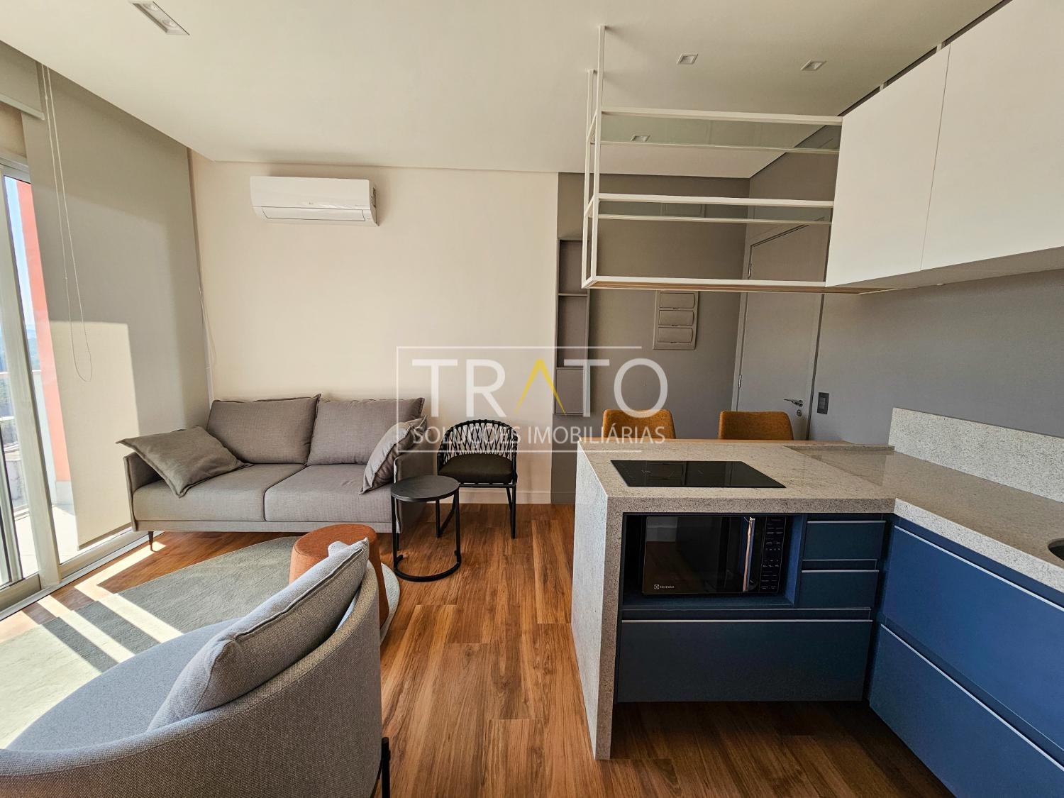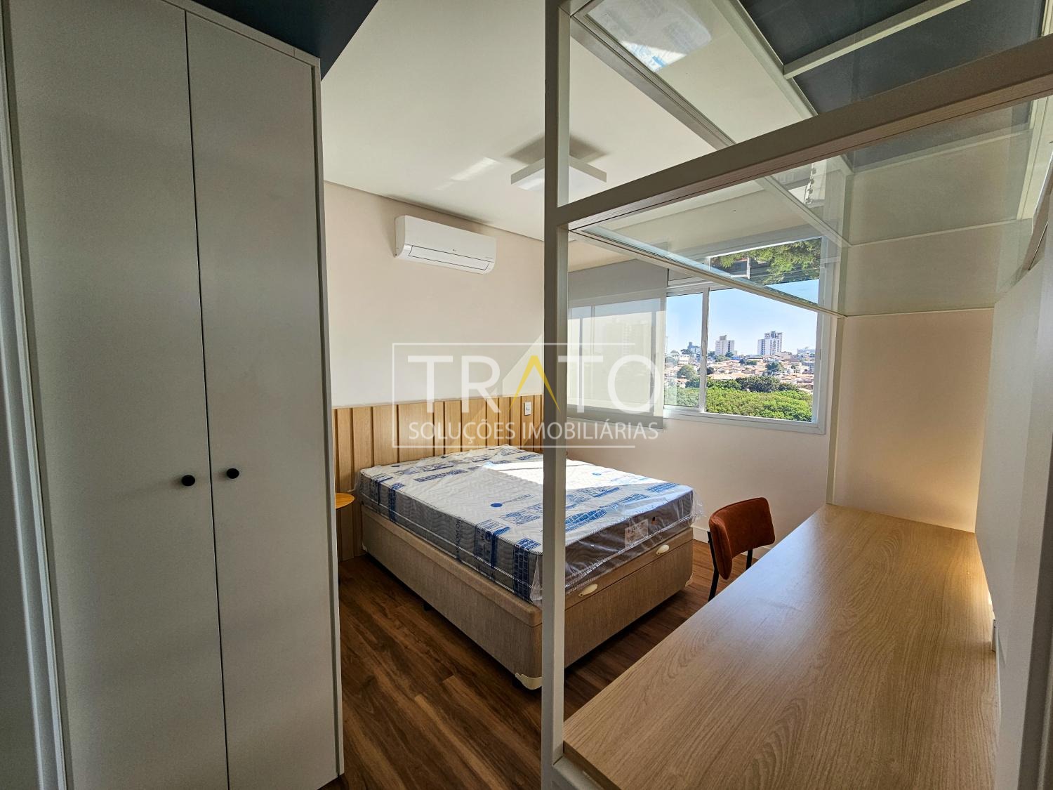 Apartamento para locação no Cambuí, andar alto, totalmente mobiliado e decorado, com sala para 2 ambientes com ampla sacada e ar condicionado, cozinha americana planejada com fogão de indução, 1 banheiro completo, 1 quarto com armários e ar condicionado, persianas, 1 vaga de garagem coberta, lazer com piscina, academia, espaço gourmet, lavanderia coletiva, cooworking e portaria 24 horas.