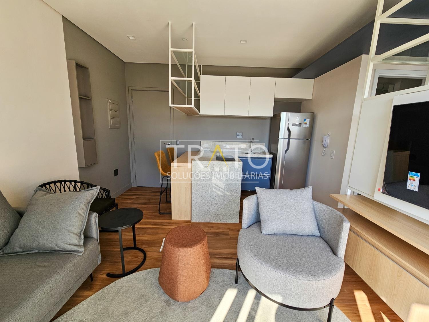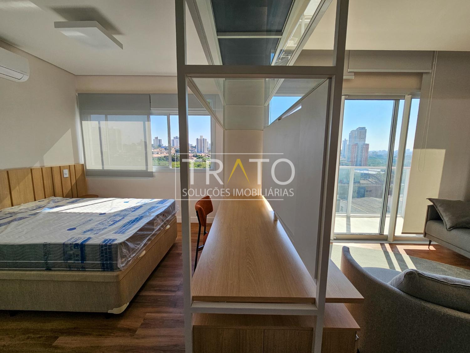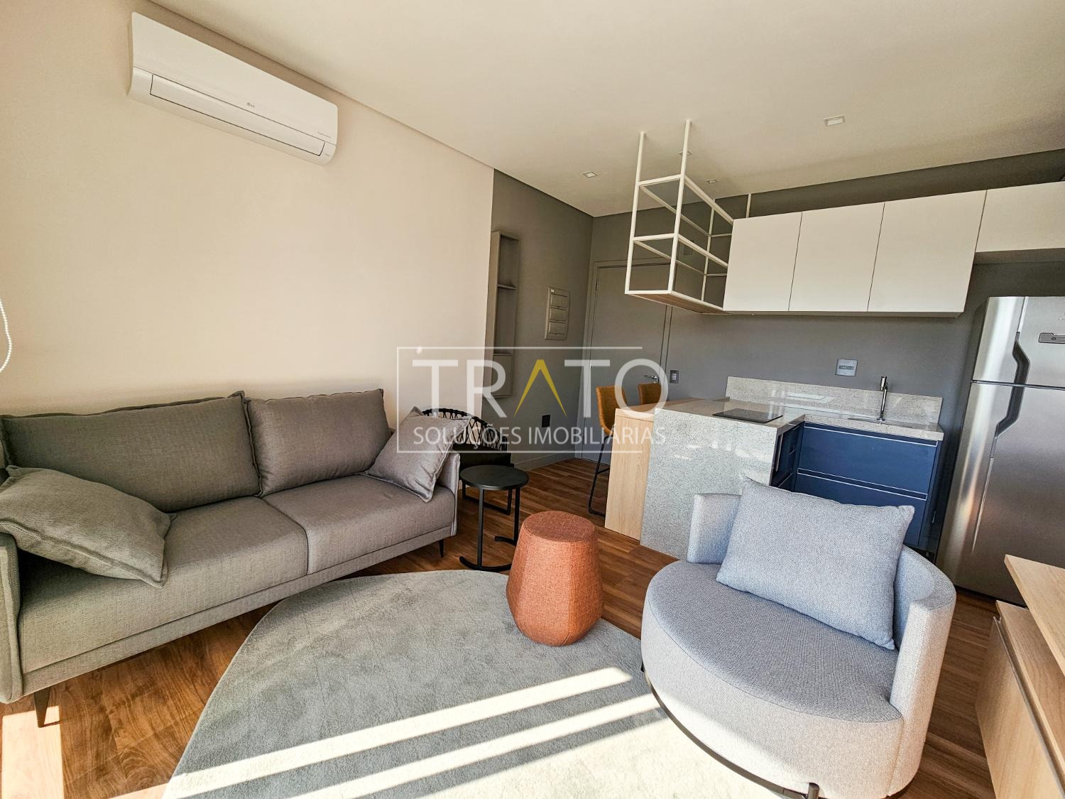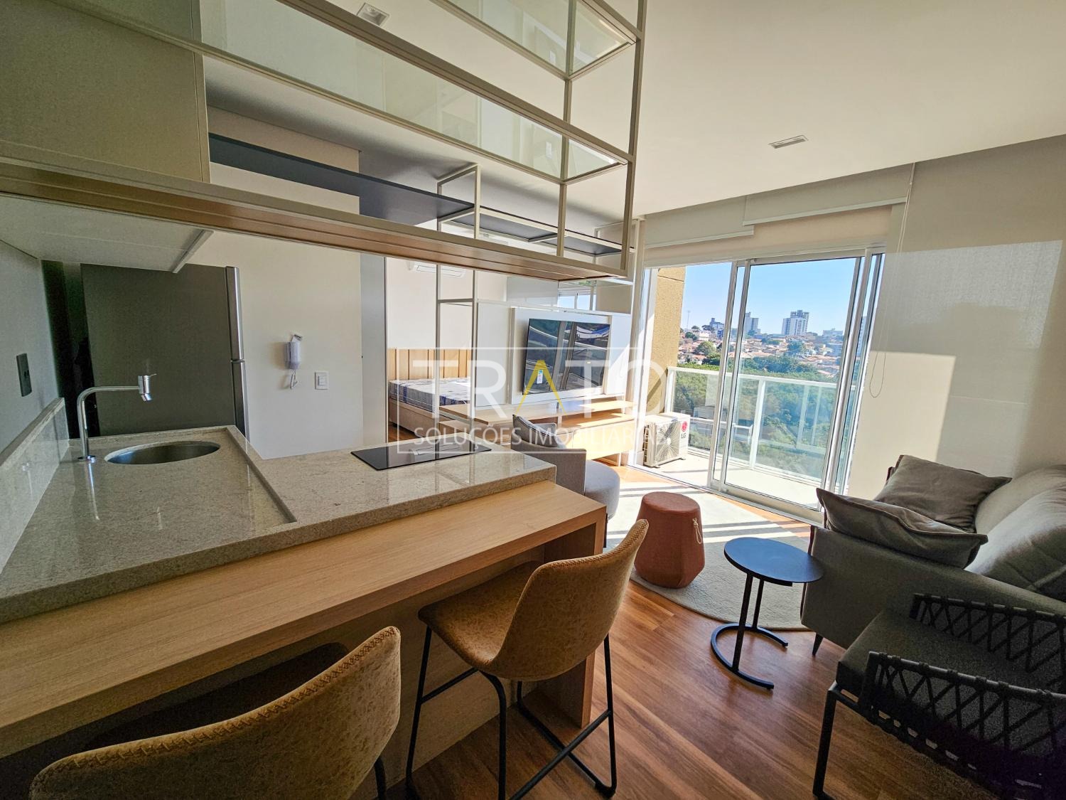 Apartamento para locação no Cambuí, andar alto, totalmente mobiliado e decorado, com sala para 2 ambientes com ampla sacada e ar condicionado, cozinha americana planejada com fogão de indução, 1 banheiro completo, 1 quarto com armários e ar condicionado, persianas, 1 vaga de garagem coberta, lazer com piscina, academia, espaço gourmet, lavanderia coletiva, cooworking e portaria 24 horas.