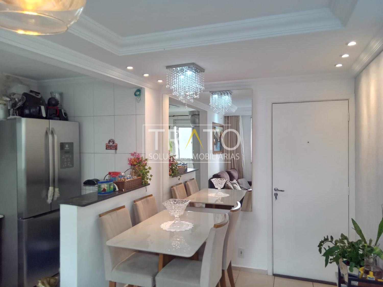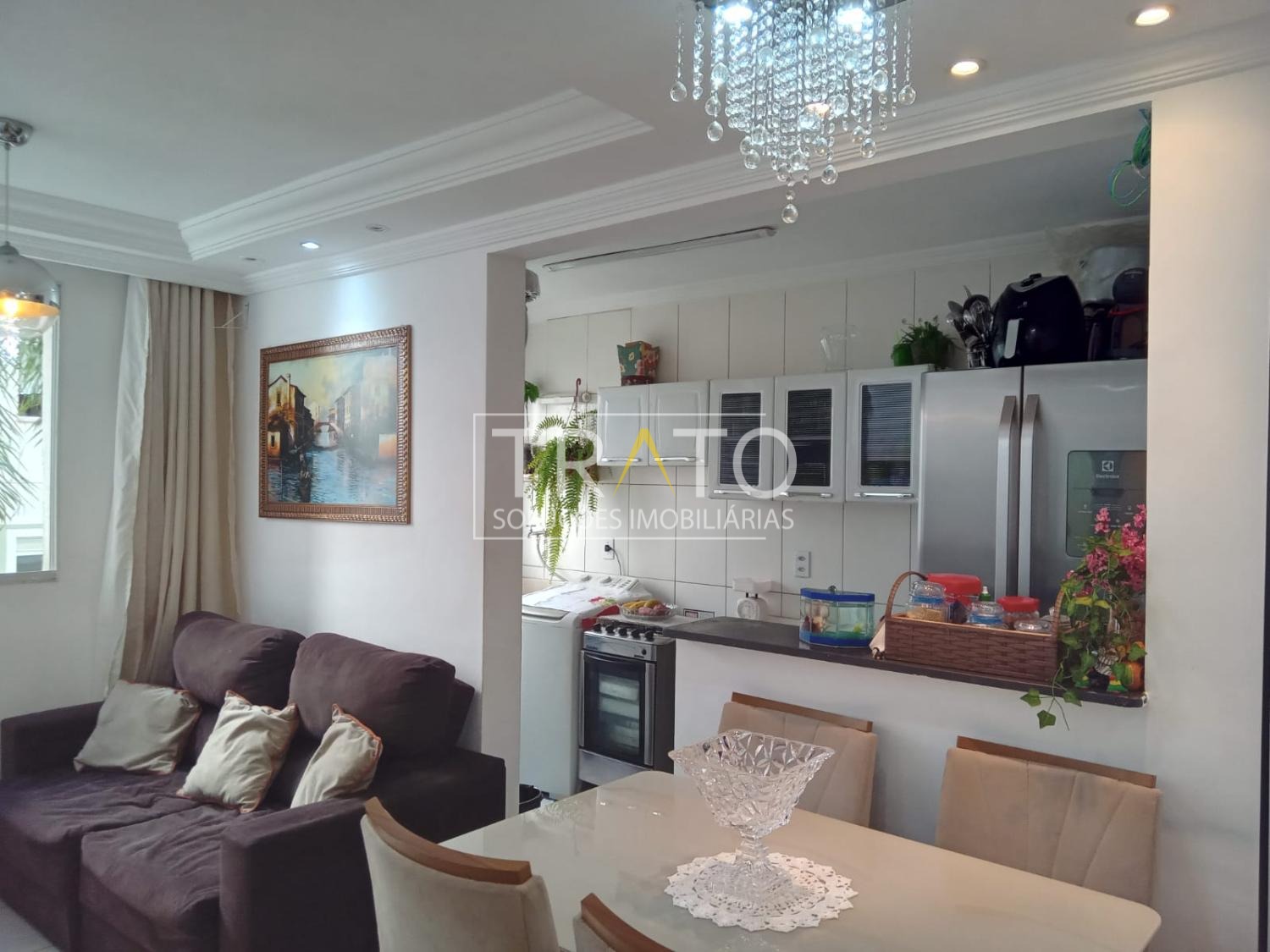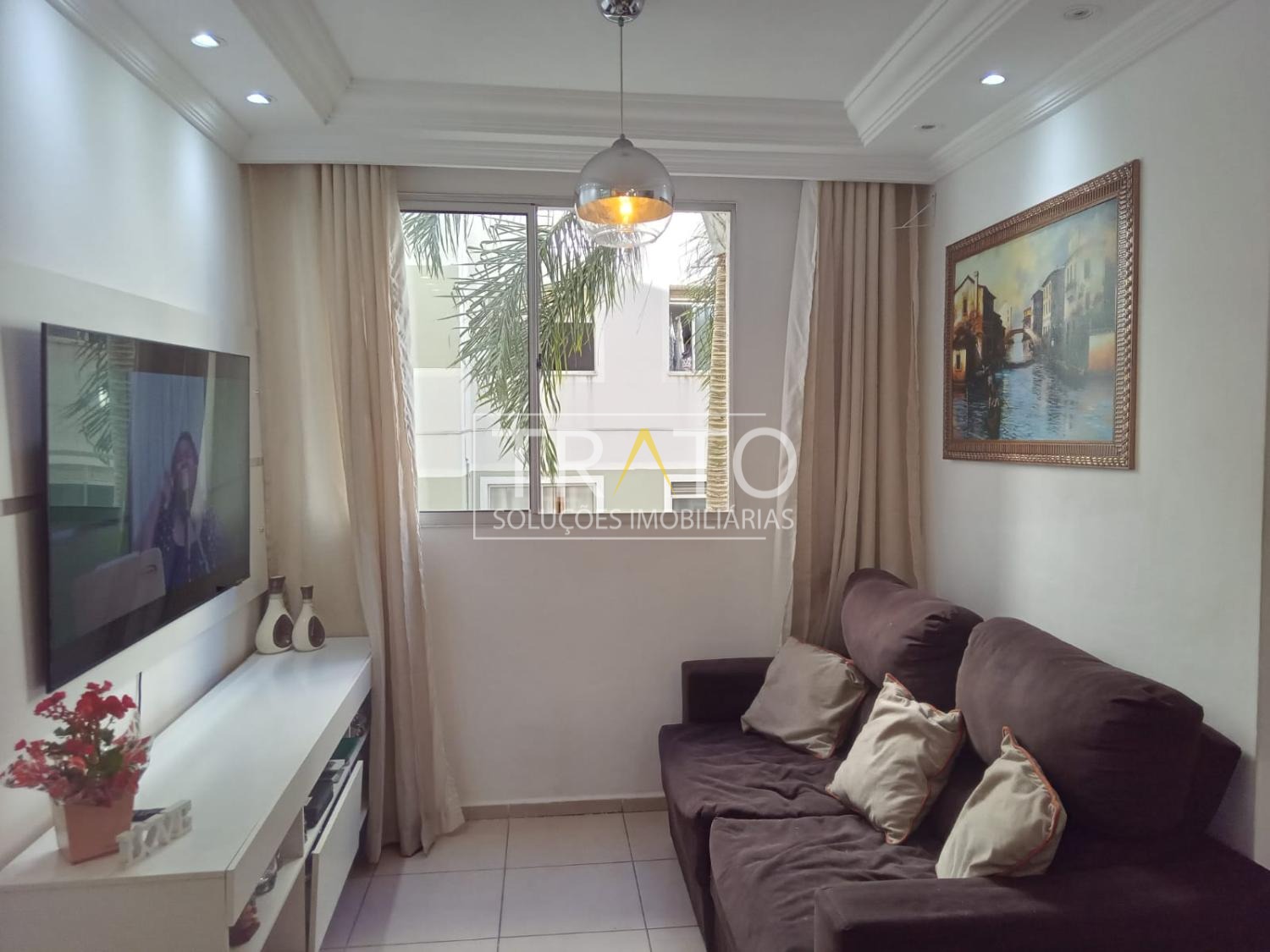 Apartamento à venda de 2 quartos de 47m² localizado no Condomínio Topázio Ville, na região do Parque Prado Nova Europa. Apartamento de 2 Quartos, sendo 1 suíte, banheiro com box e armário, cozinha estilo americana, sala de 2 ambientes ampla, 1 vaga coberta, somente 1 lance de escada.