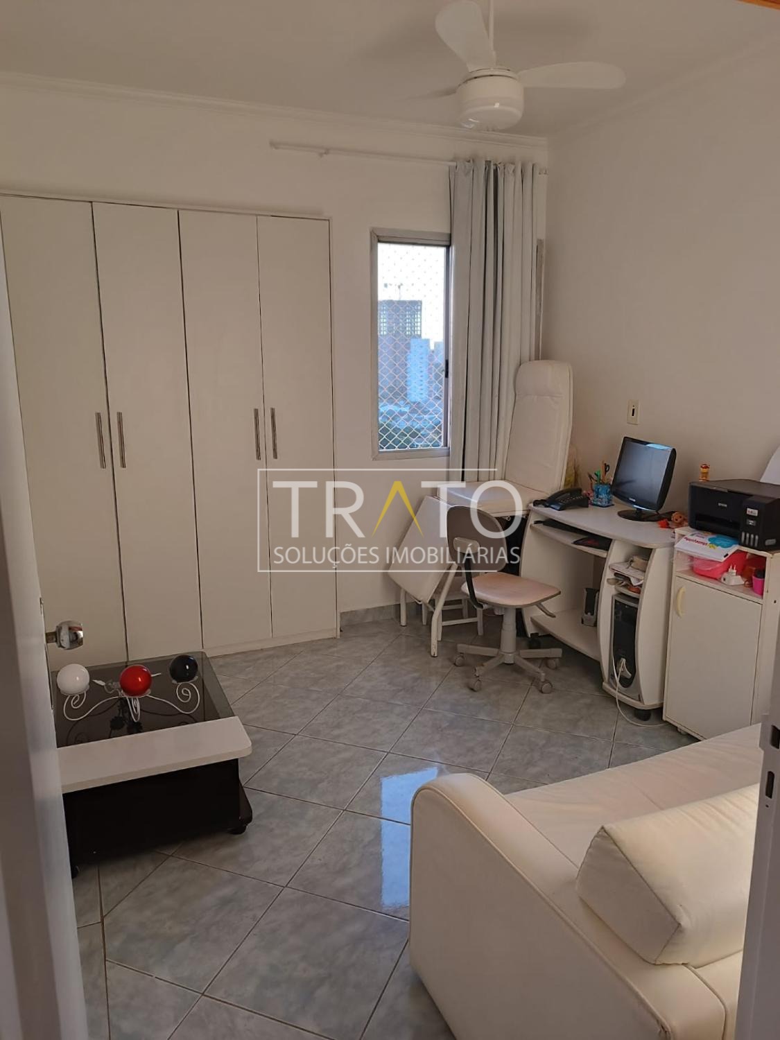 Ótimo apartamento à venda na cidade de Campinas, nas proximidades do campo do Guarani, com excelente acabamento, sala para 2 ambientes com sacada e linda vista permanente, 2 ótimos quartos, com armários embutidos, cozinha planejada, área de serviço grande, com banheiro de empregada, 1 vaga de garagem coberta. Bem localizado no bairro, com diversos tipos de comércio.