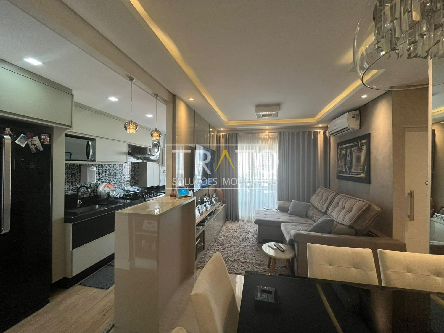 Excelente apartamento à venda em Campinas, com 3 quartos, sendo suíte com closet e ar-condicionado. Totalmente planejado, com acabamento impecável, sala para 2 ambientes com ar-condicionado e varanda gourmet fechada com vidro e vista livre. Cozinha americana planejada e 2 vagas cobertas.