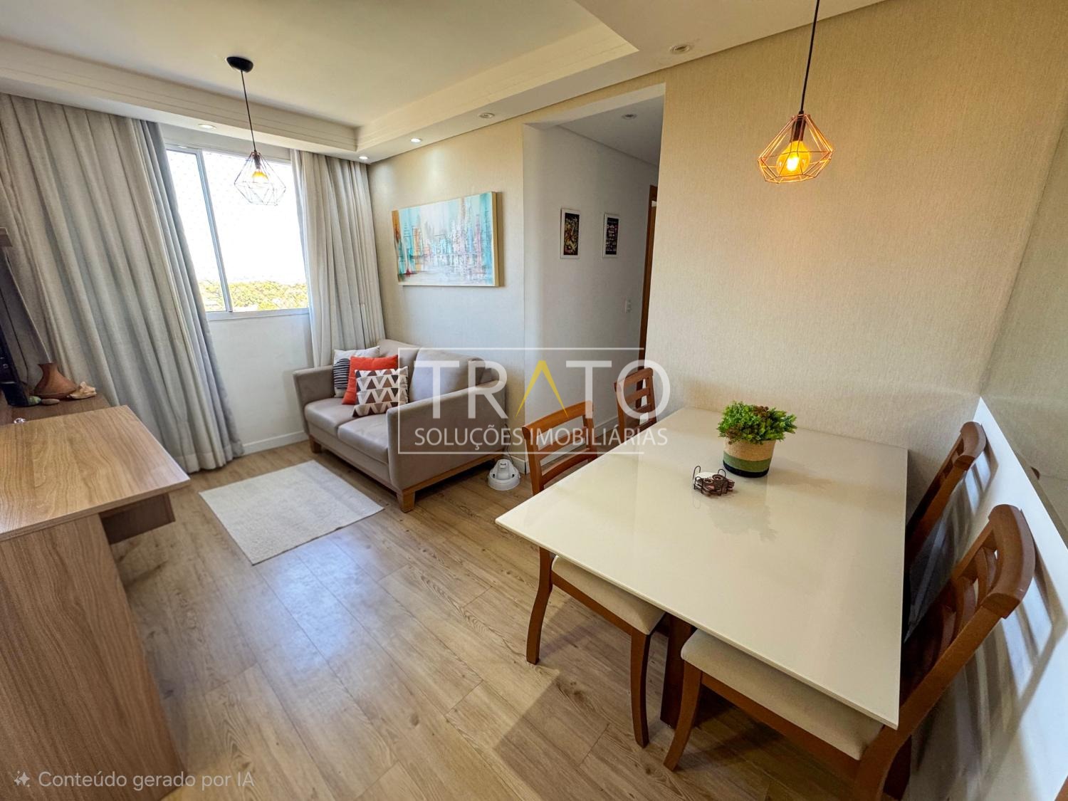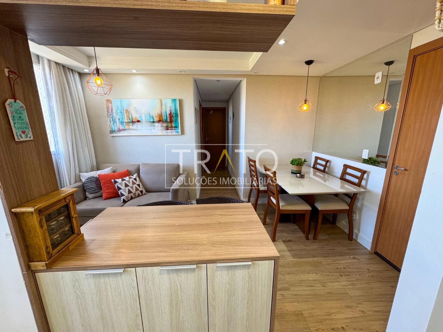 Apartamento semi mobiliado, totalmente planejado, 5km da Mandic e Unip, ao lado do Carrefour Valinhos, em rua tranquila e sem saída, ultimo andar com linda vista livre, acabamento de primeira, iluminação em Led, 2 dormitórios com armários planejados, banheiro moderno com pia em granito, gabinete e box blindex, cozinha americana planejada, integrada à área de serviço com armários, cooktop, forno, depurador, sala para 2 ambientes com sofá, painel, mesa com cadeiras, 2 vagas de garagem descoberta tipo gaveta e portaria 24 horas, garantindo total segurança.