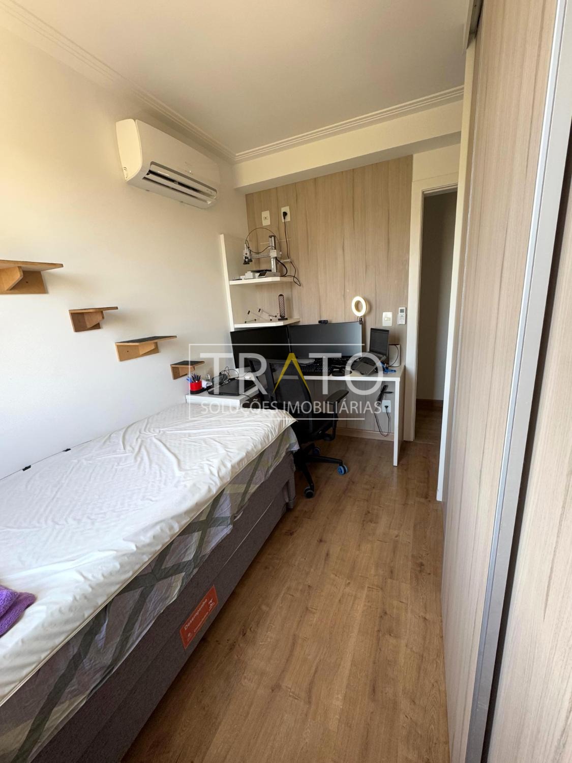 Apartamento com 3 dormitórios sendo 1 suíte com planejados (2 com ar condicionado), ampla sala de estar com ar condicionado, varanda gourmet com churrasqueira e fechamento em blindex, cozinha americana planejada, área de serviço com armários, banheiro social completo, duchas com aquecimento à gás, 2 vagas de garagem descobertas e lazer clube no condomínio. Aparelhos de ar condicionado com quente e frio, multi split.
