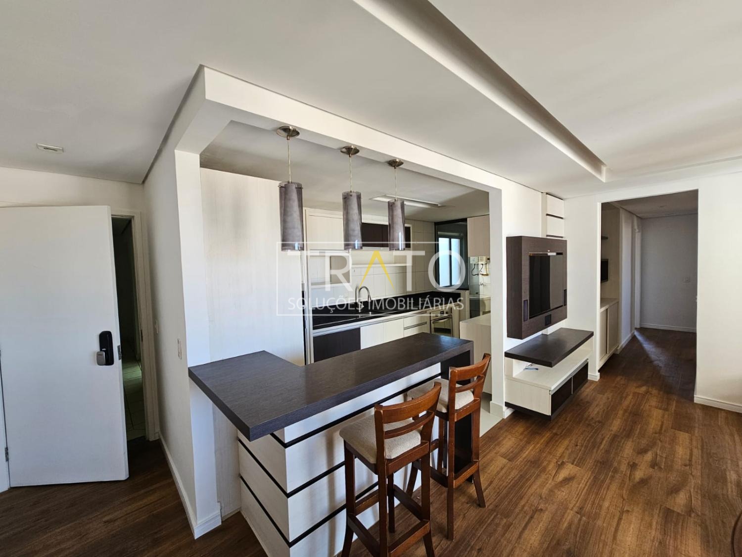 Apartamento semimobiliado com 3 dormitórios, sendo 1 suíte; 2 banheiros; 1 sala ampla para 2 ambientes; 1 cozinha estilo americano, planejada e estendida, com cooktop e forno embutidos; fechadura eletrônica na porta. O apartamento conta com uma belíssima varanda com ótima vista, sofá, mesa de jantar, TV de 46" embutida em painel integrado, cooktop de 5 bocas, forno elétrico e aquecedor a gás.