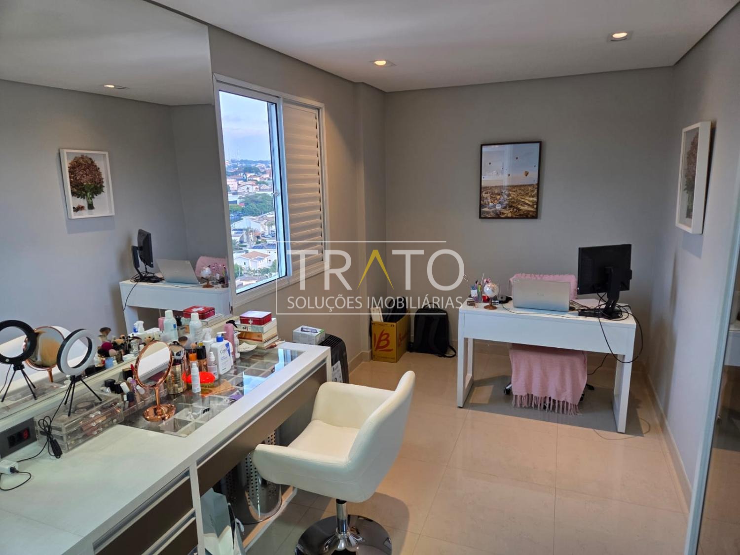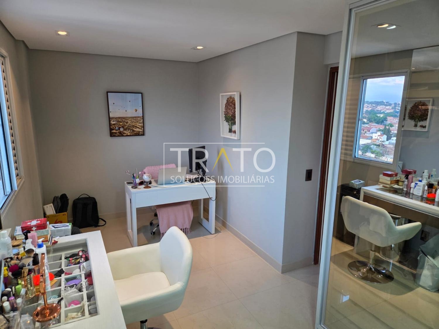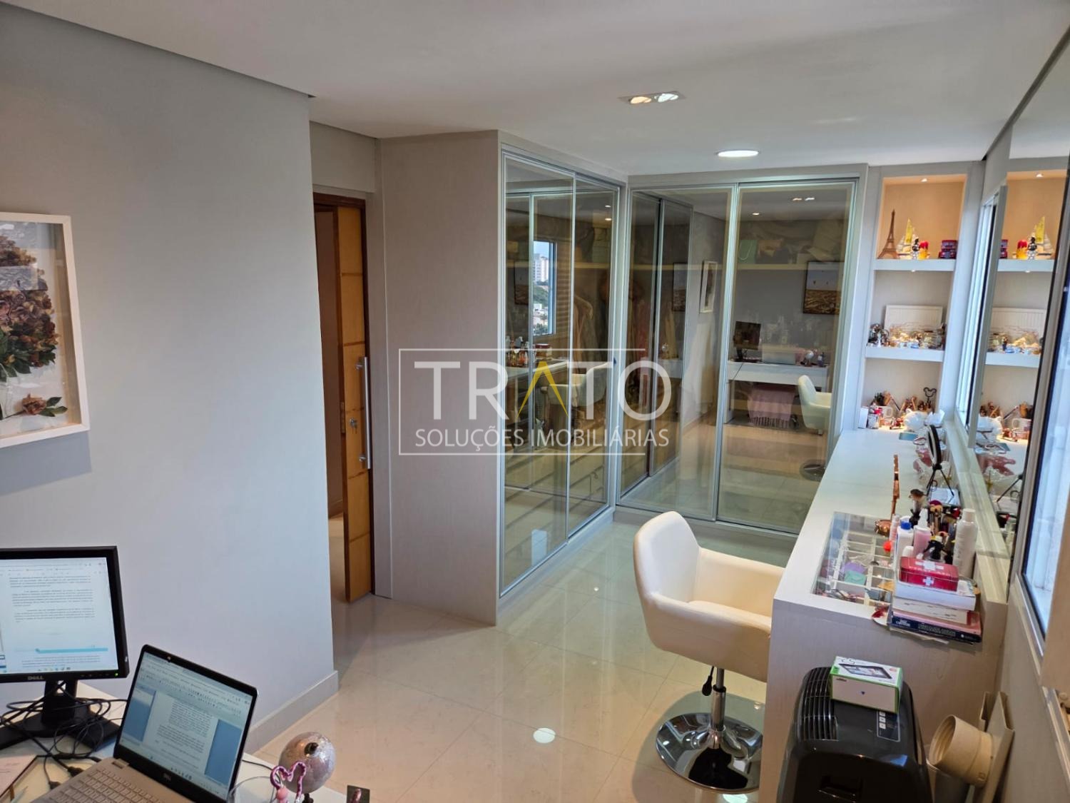 Armários embutidos em todos os cômodos com portas de vidro reflecta.
