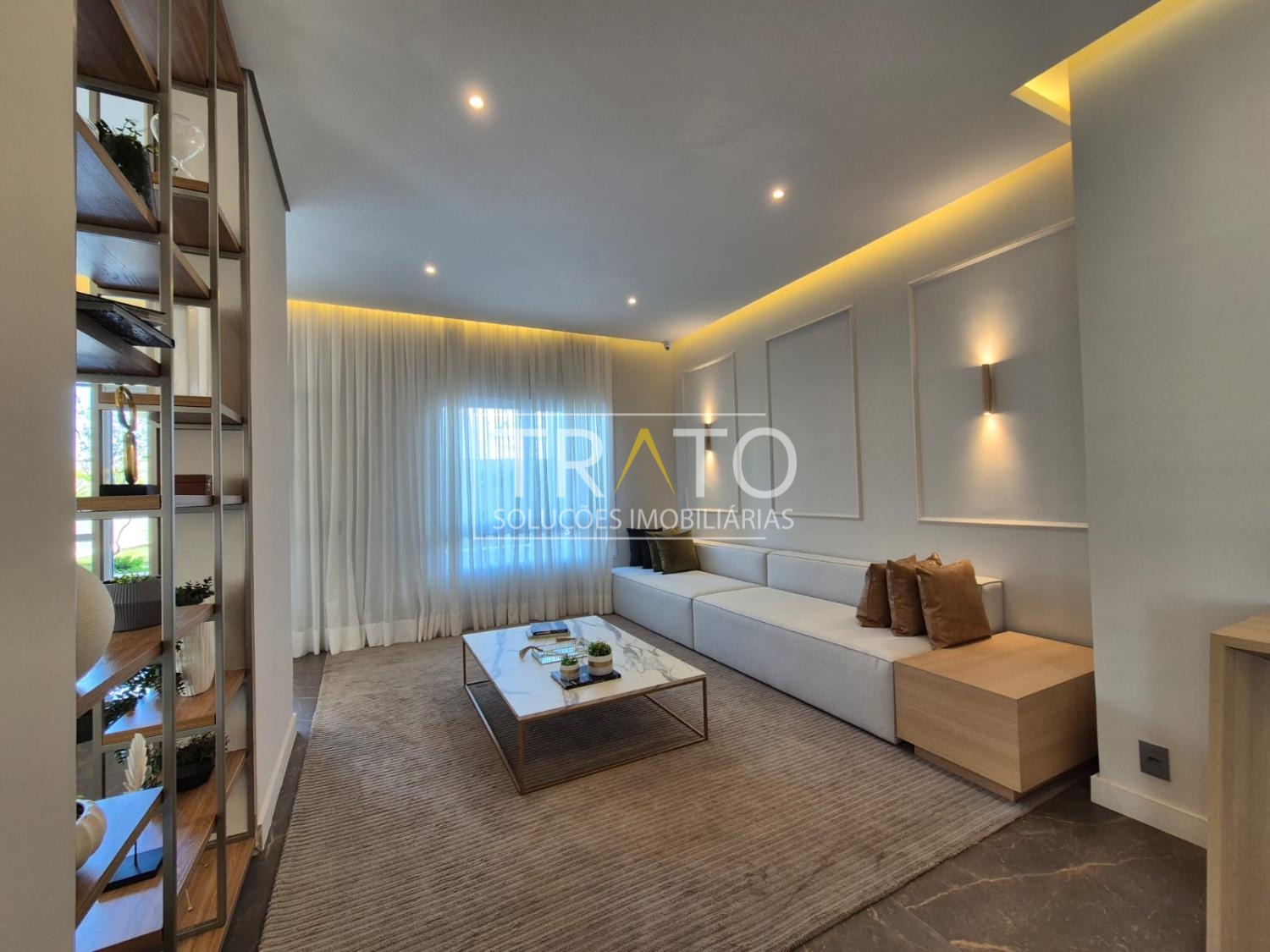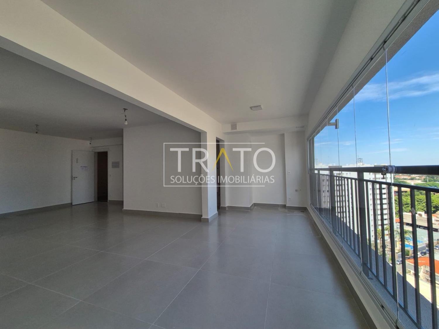 A varanda foi integrada ao living e conta com fechamento em vidro retrátil, permitindo aproveitar o espaço em todas as estações, com luminosidade e versatilidade.