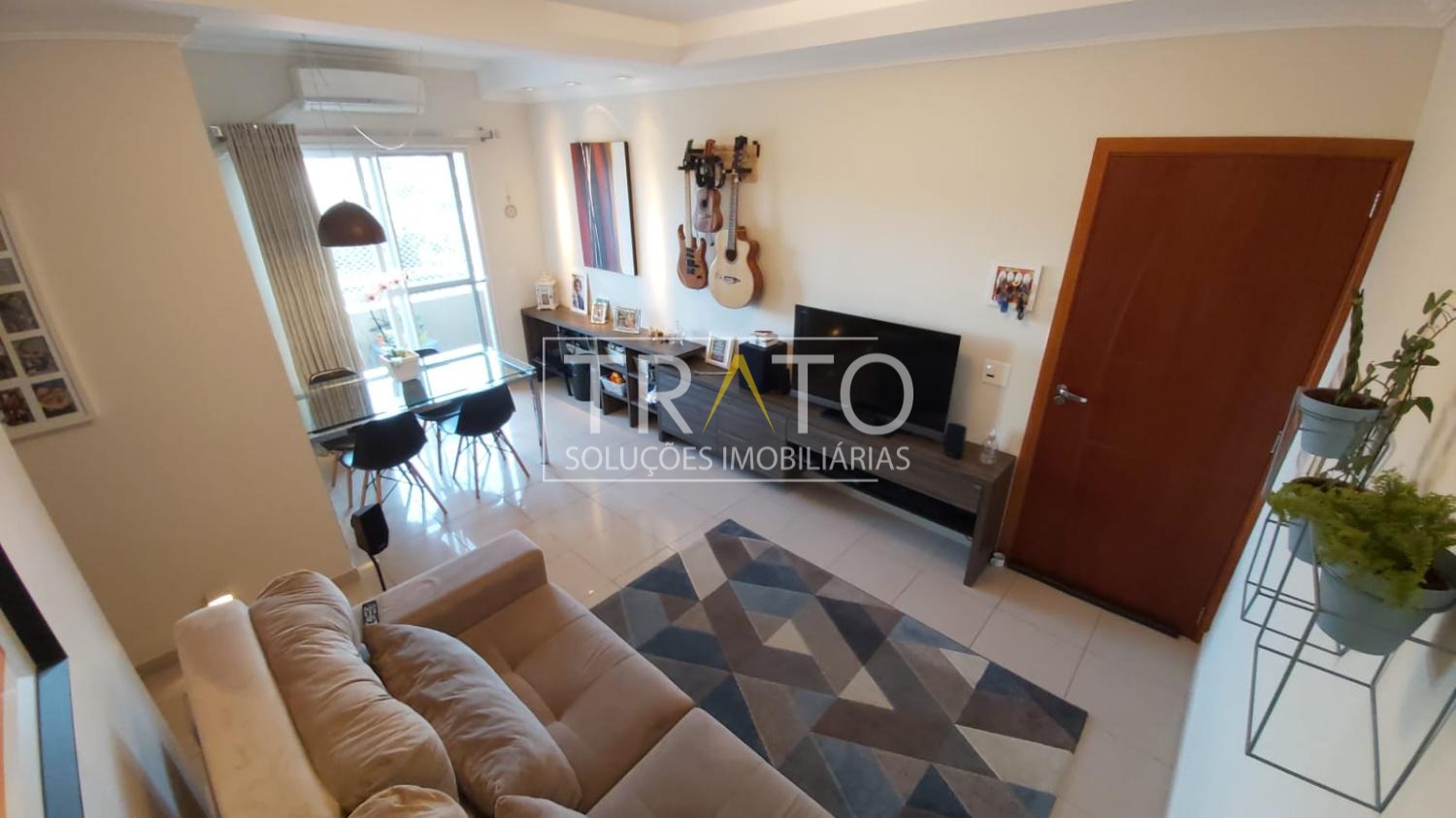 O imóvel possui 2 dormitórios, sendo 1 suíte, além de banheiro social e banheiro de serviço. A sala é ampla, com espaço para dois ambientes, proporcionando conforto e versatilidade no dia a dia. Quartos e sala contam com ar-condicionado, garantindo bem-estar em todas as estações.