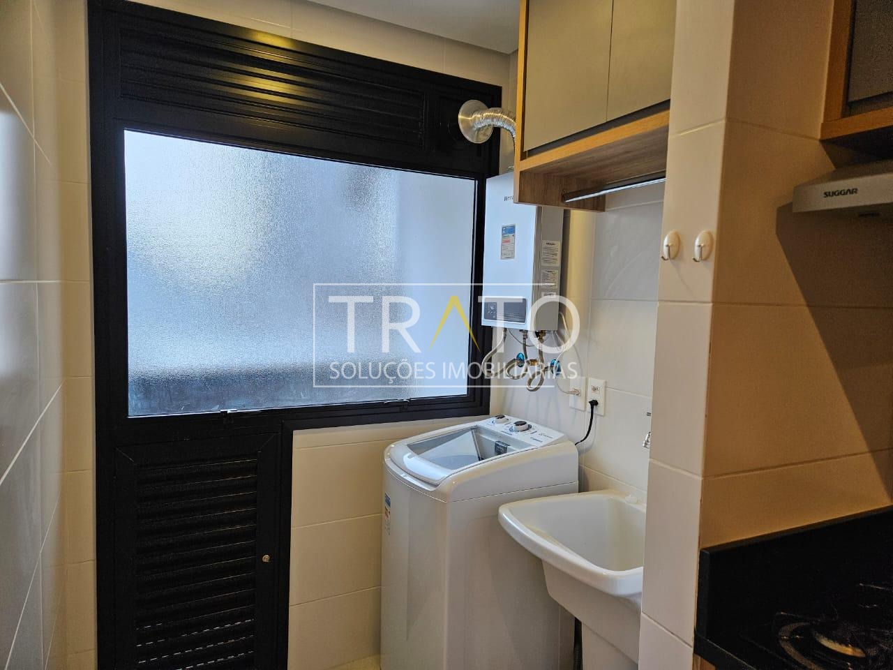 * Lavanderia: oferece armários planejados e conta com uma máquina de lavar roupas.
