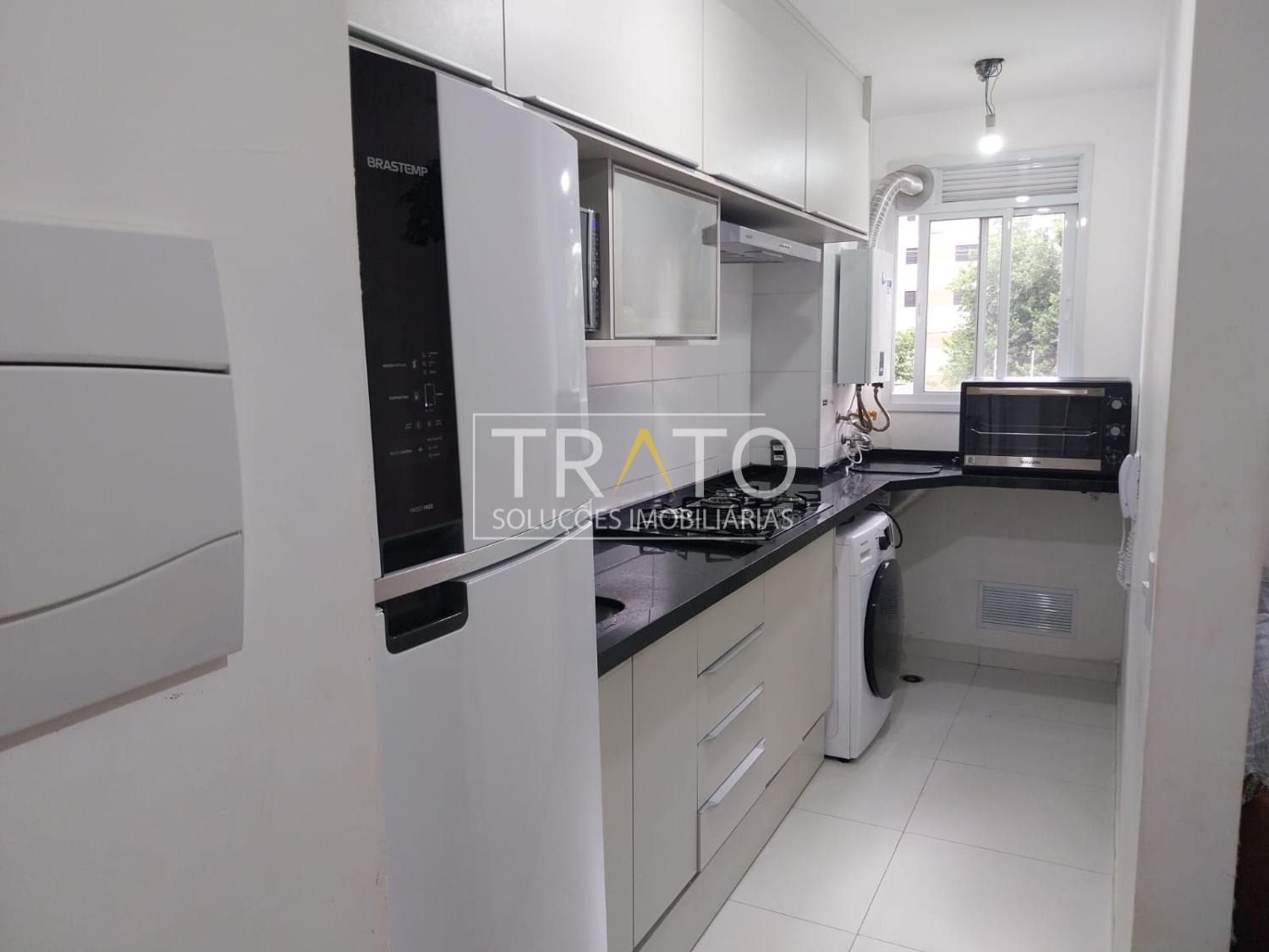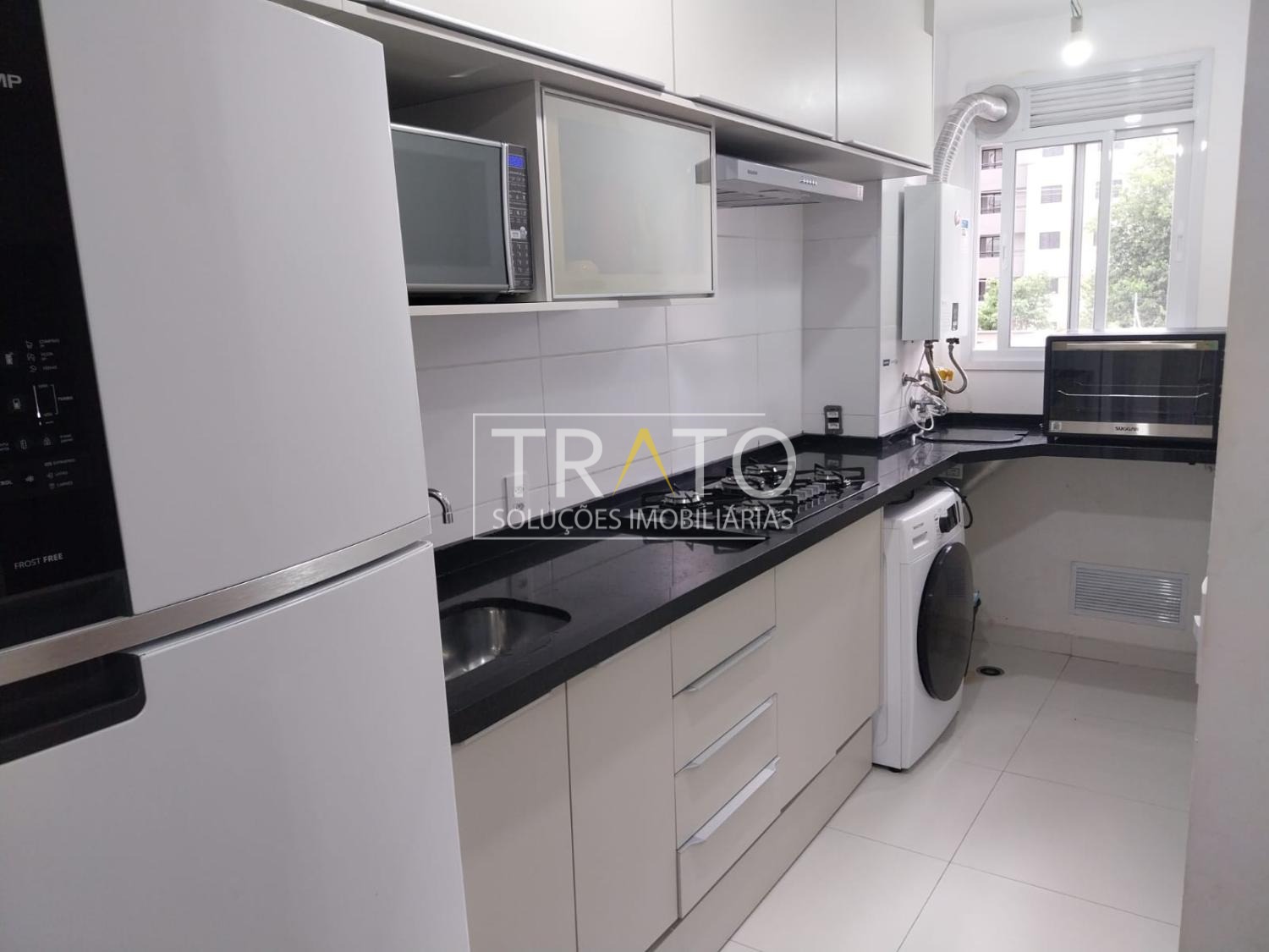Esse apartamento conta com 2 dormitórios planejados e com ar-condicionado sendo 1 suíte, 1 sala para 2 ambientes interligado à sacada , 2 banheiros, cozinha planejada e equipada com eletrodomésticos e com cooktop, coifa embutidos e forno elétrico e 1 vaga de garagem coberta. Gás encanado. Pisos e revestimentos na cozinha. Excelente localização, próximo ao Centro de Campinas. Condomínio com lazer completo. Agende já sua visita! Trato Soluções Imobiliárias!
