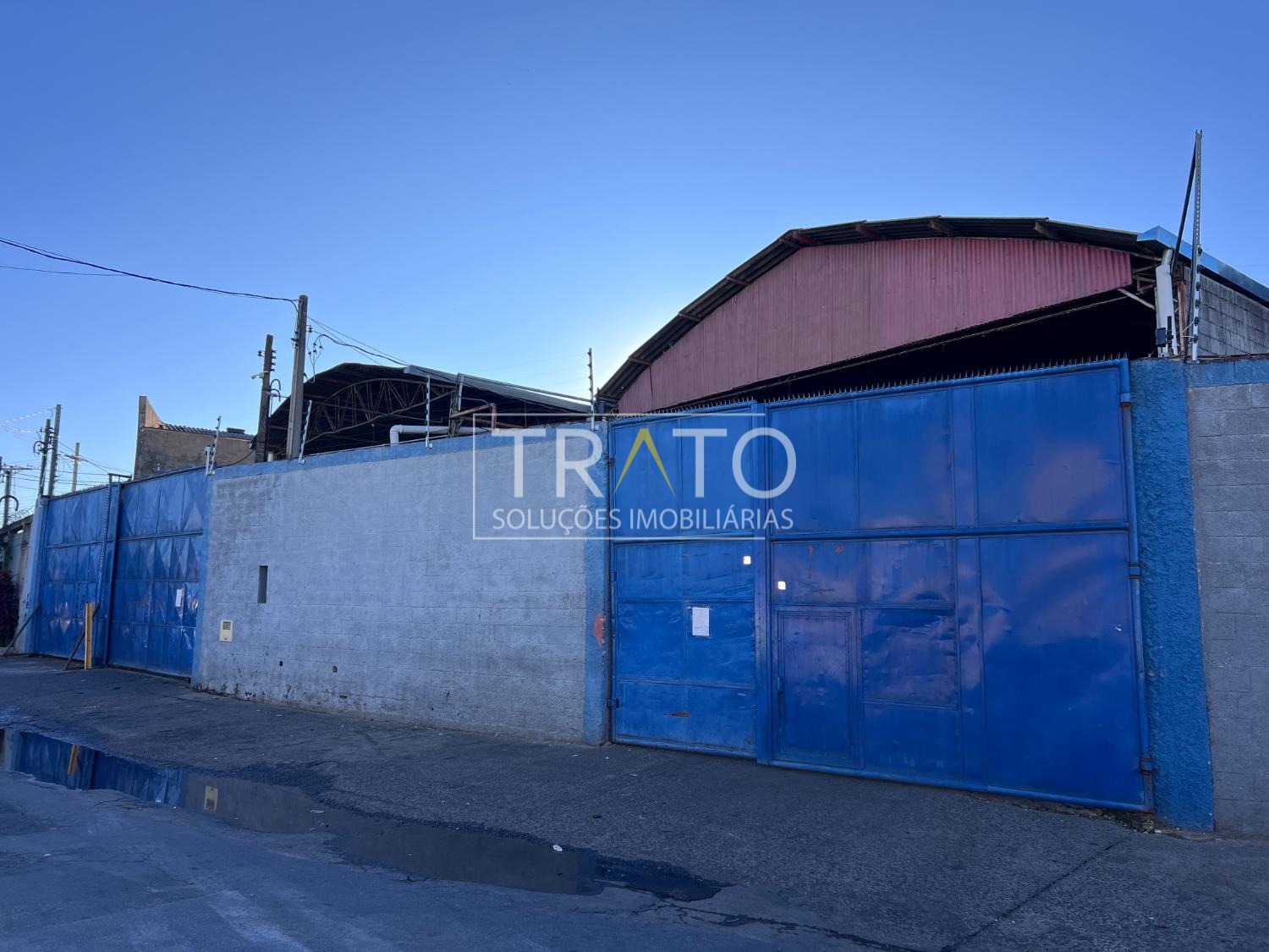 4 barracões unificados totalizando 905m² de vão livre, com um pé direito de aproximadamente 6,00m de altura possibilitando o acesso de caminhões.