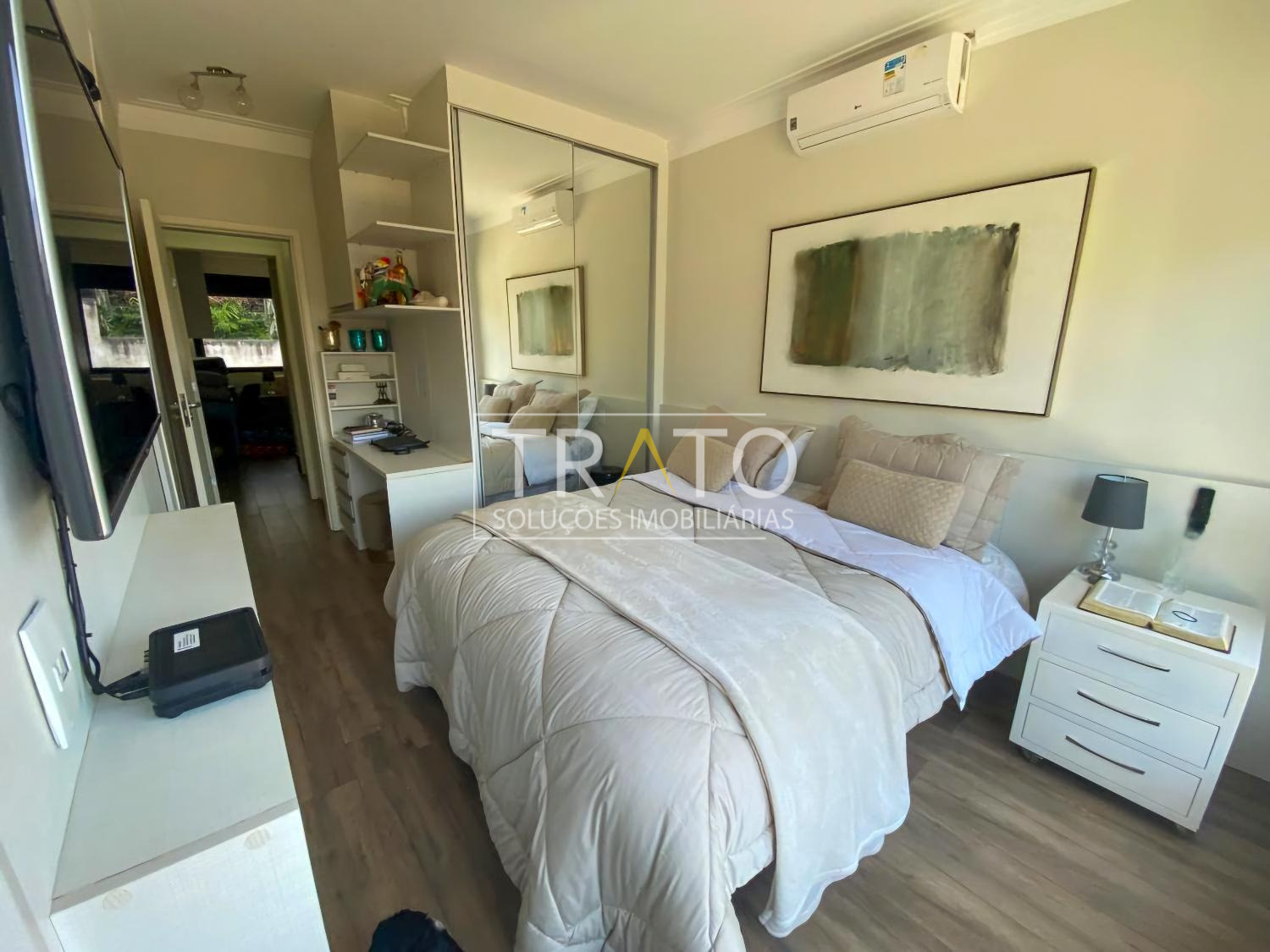 Residência moderna com acabamento de alto padrão, escada em mármore travertino, bem iluminada e arejada, ampla área de armários, três suítes, sendo uma com closet, armários com portas de correr espelhadas em todas as suítes, bancada de estudos com armário suspenso em todas as suítes, persianas automáticas com controle remoto em todas as suítes, ar-condicionado duo inverter em todas as suítes e na sala, lavabo, piscina aquecida com iluminação de LED e spa, com preparação para cascata na piscina, aquecimento solar e elétrico, cozinha americana, área gourmet, churrasqueira e muito mais, em condomínio moderno e tranquilo próximo ao Colégio Porto Seguro e ao Itamaracá Mall em Valinhos, SP. Imóvel sem dívidas, passível de financiamento.