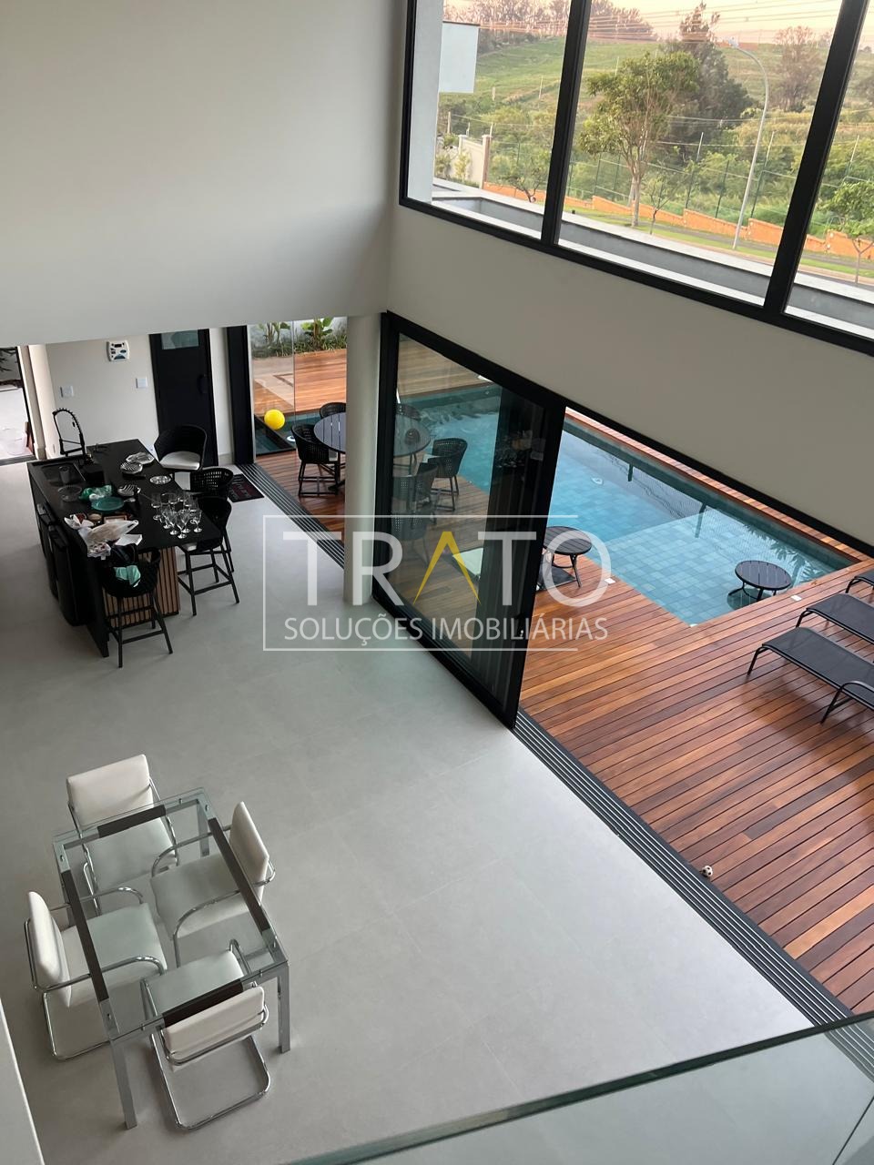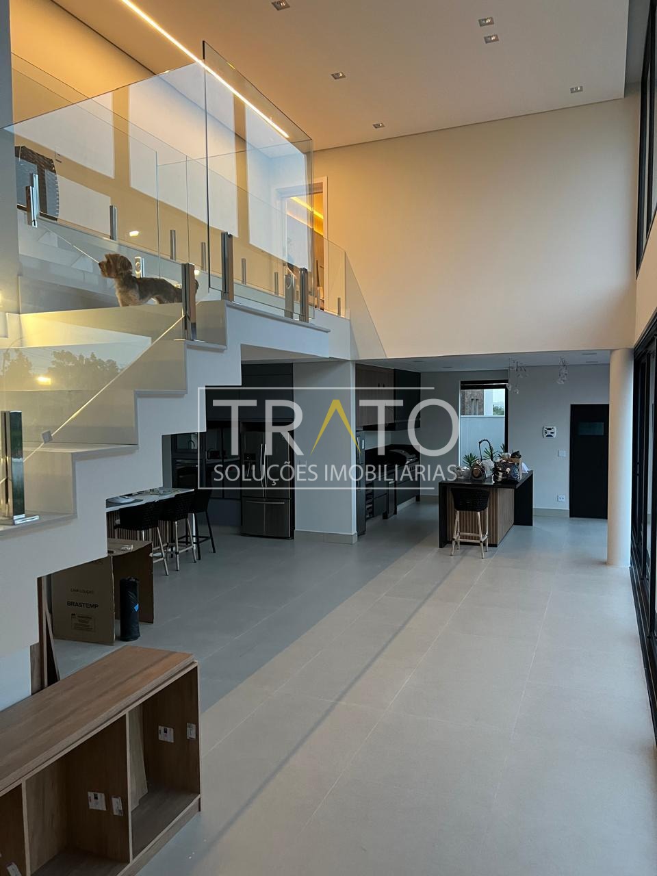 A sala de estar possui cortinas automatizadas e iluminação automatizada em parte dos ambientes, proporcionando praticidade e sofisticação. As janelas são automáticas e a casa está preparada para receber carros elétricos, oferecendo 6 vagas de garagem, sendo 3 cobertas.