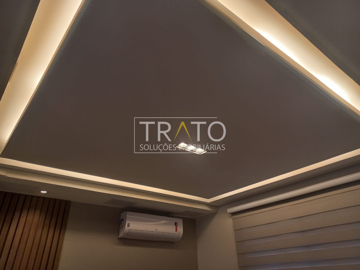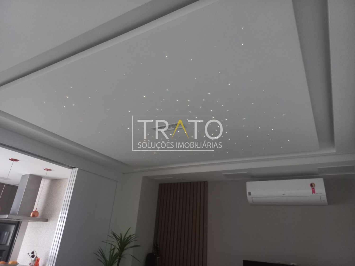 Sala ampla com home theater e um charmoso efeito de teto estrelado, perfeita para momentos de entretenimento.