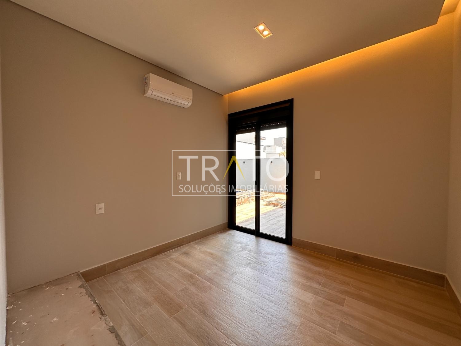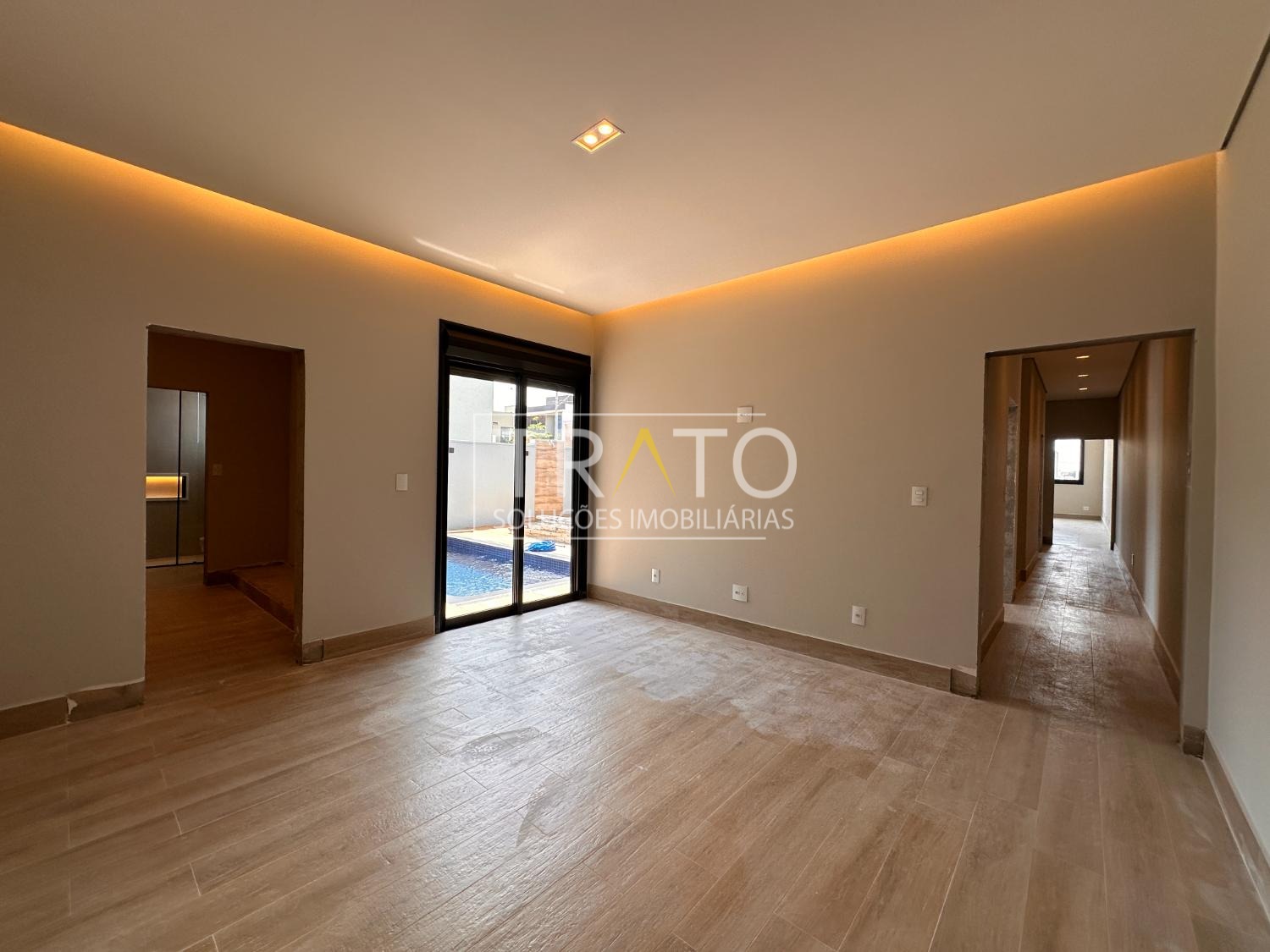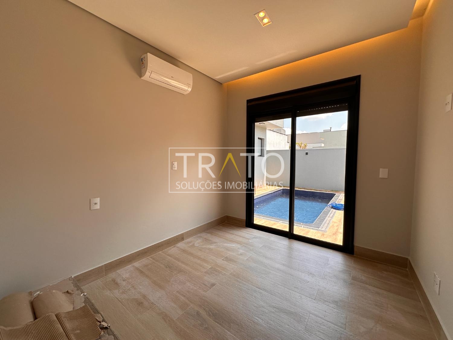 Sala para 2 ambientes com pé direto duplo, cozinha em estilo americano rica em armários planejados; 3 suítes com armários planejados, sendo a máster com closet; escritório; espaço gourmet com churrasqueira, e quintal com piscina.