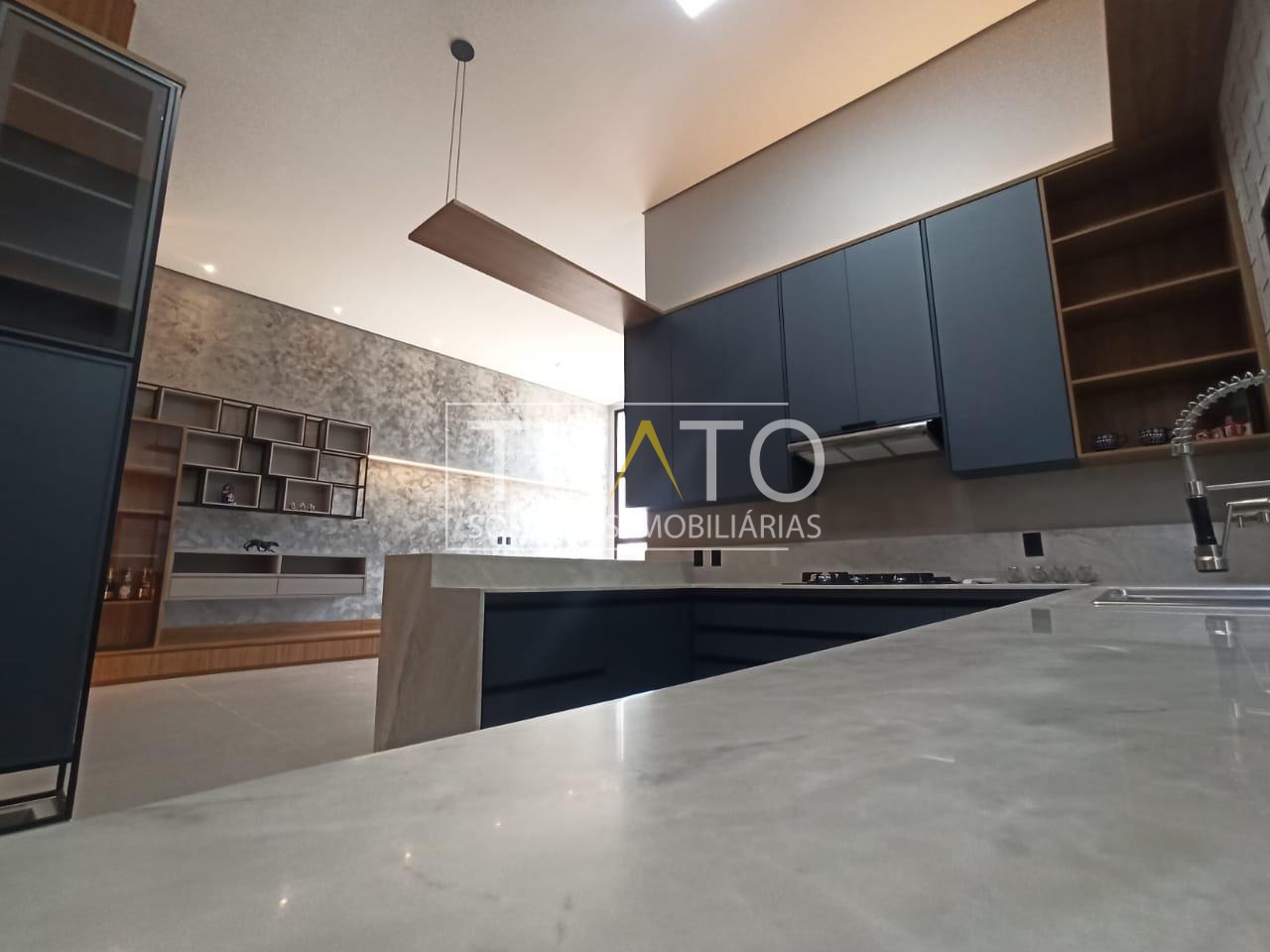 Distribuição: Salas de TV e Jantar, lavabo, escritório. Salas conjugadas com a cozinha.