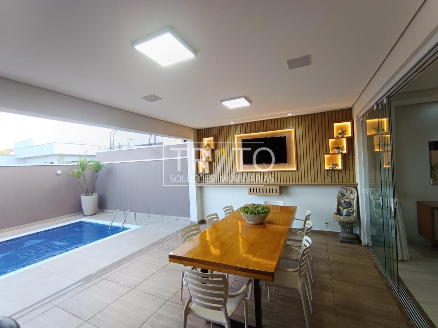A casa conta com 3 suítes climatizadas, sendo a principal equipada com amplo closet. Os ambientes sociais incluem sala de estar integrada à sala de jantar, lavabo, cozinha planejada, despensa, escritório, depósito e uma completa área de lazer com piscina e churrasqueira – ideal para momentos de convivência e relaxamento.