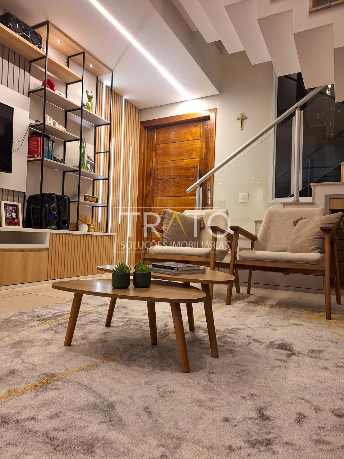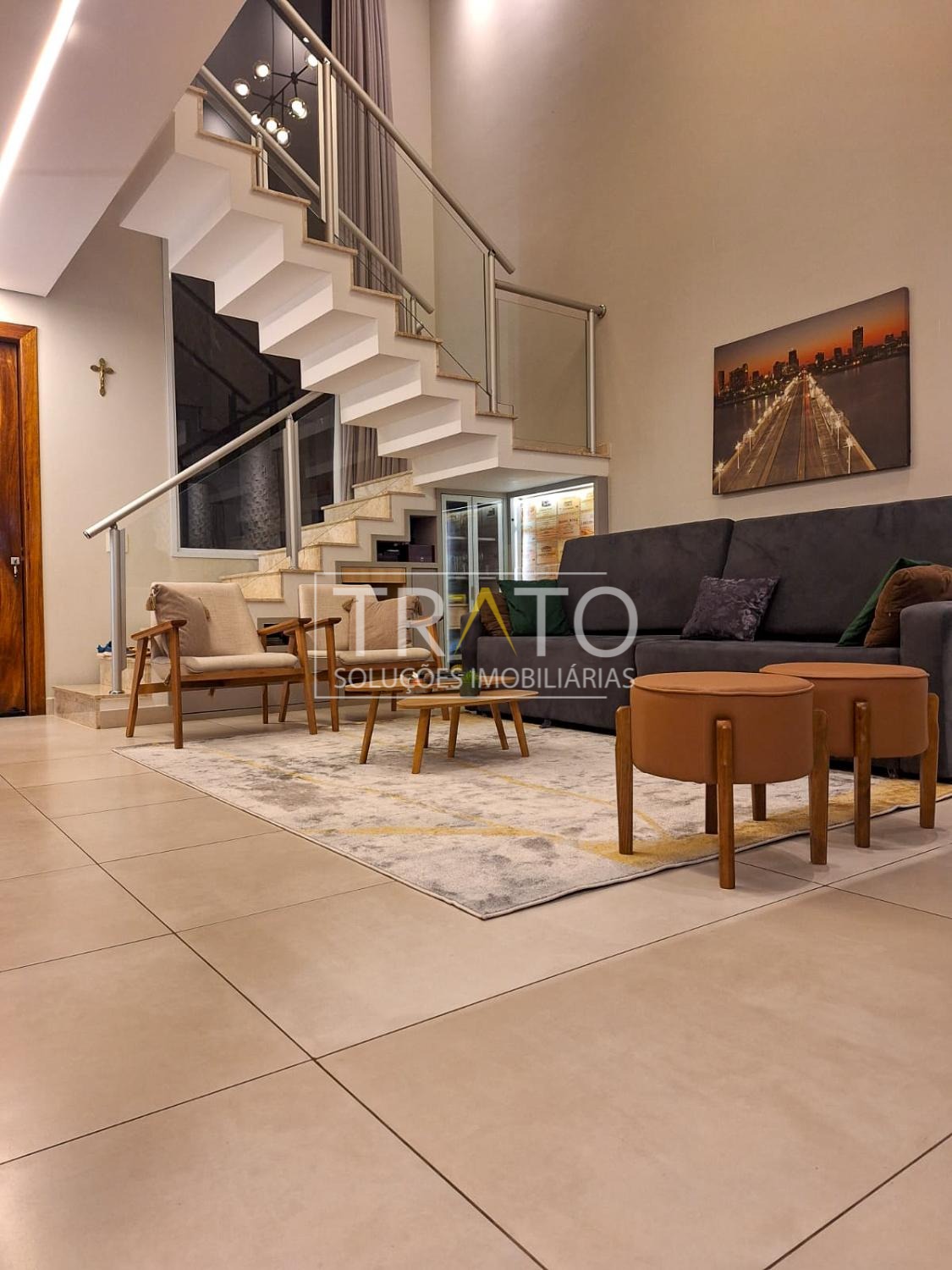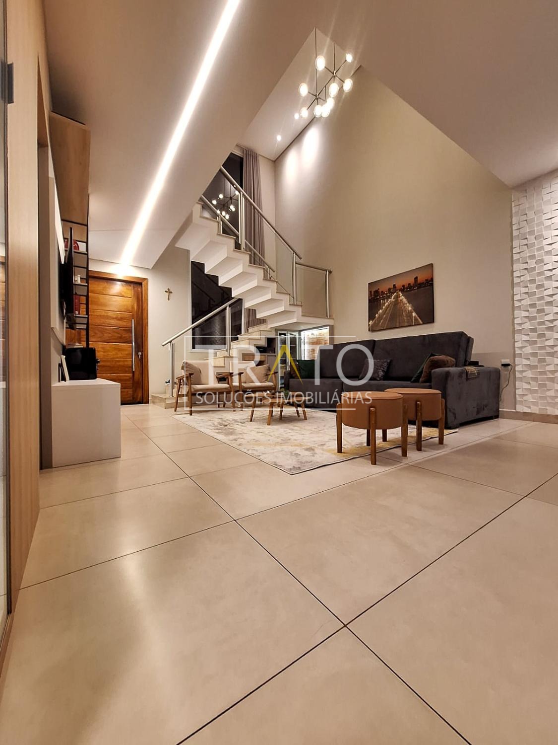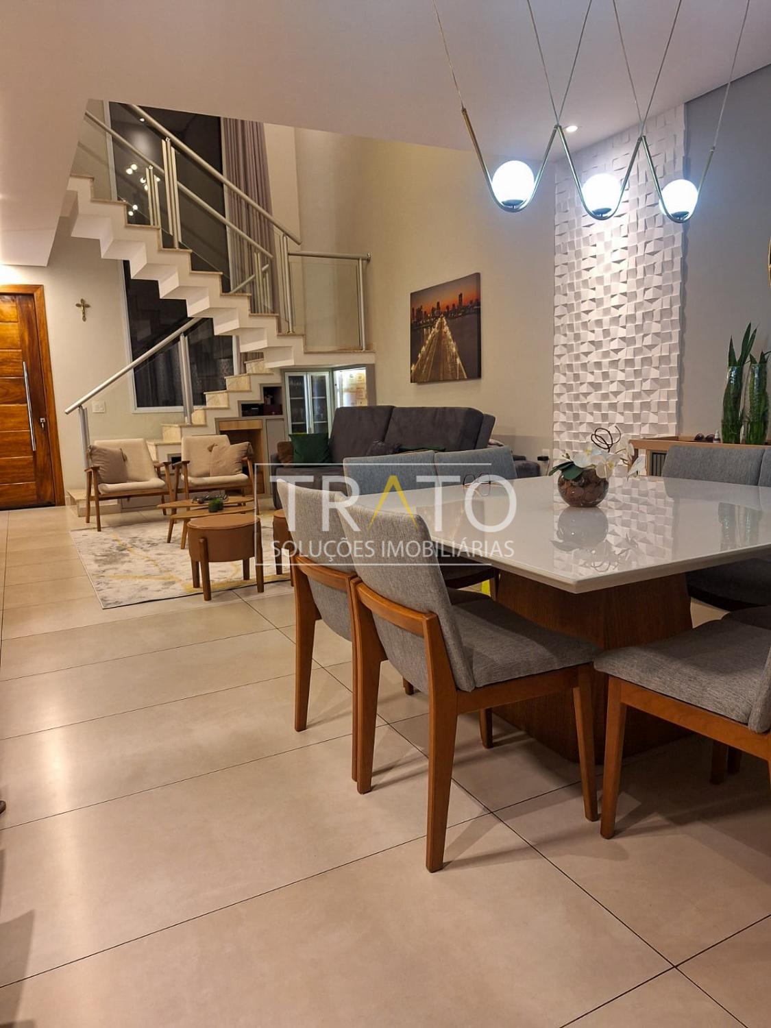 Casa à venda no condomínio Real Park em Sumaré, com 250 m² de área construída e um projeto pensado para oferecer conforto, funcionalidade e sofisticação. O sobrado conta com 3 dormitórios, todos com ar-condicionado, sendo 1 suíte com closet, garantindo espaço e privacidade para toda a família. A sala possui pé direito duplo, trazendo imponência e excelente iluminação natural.