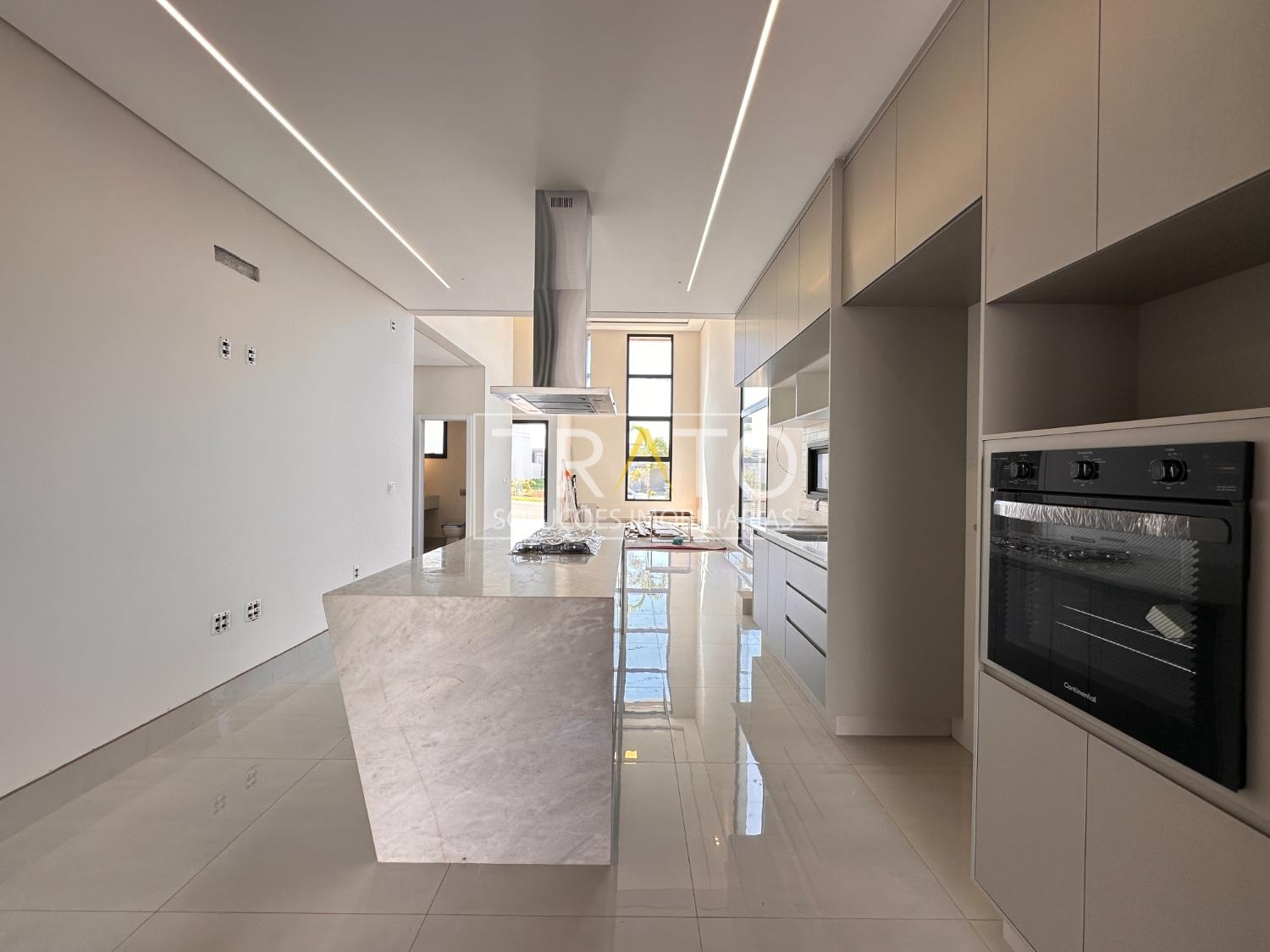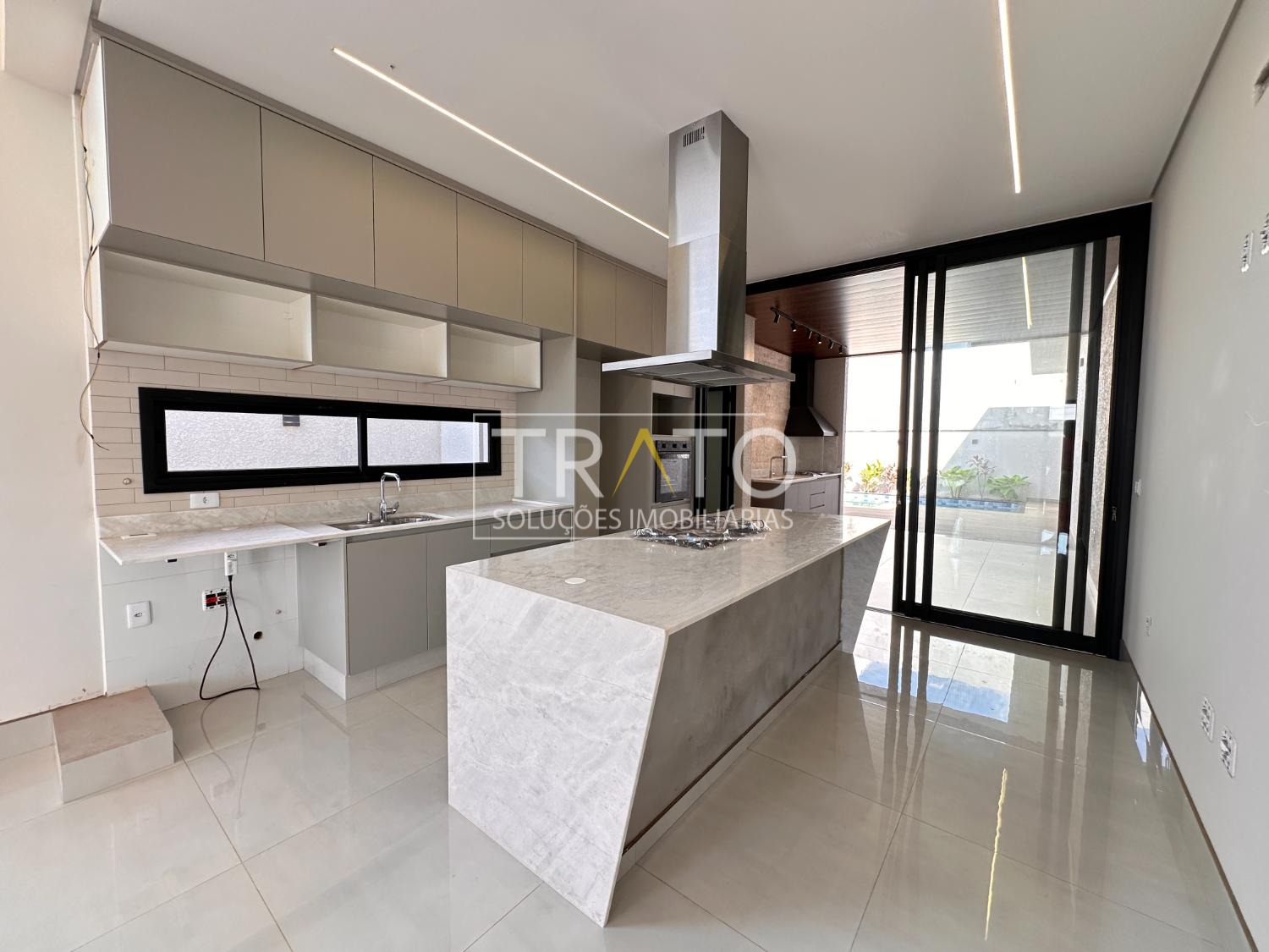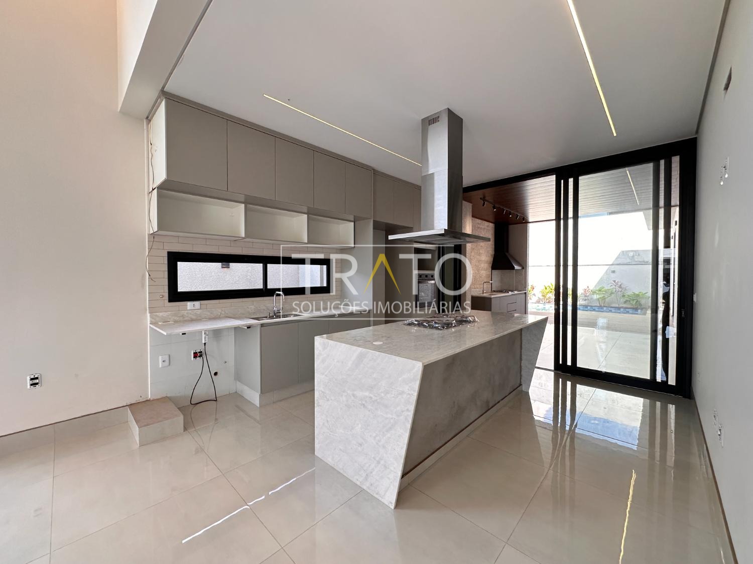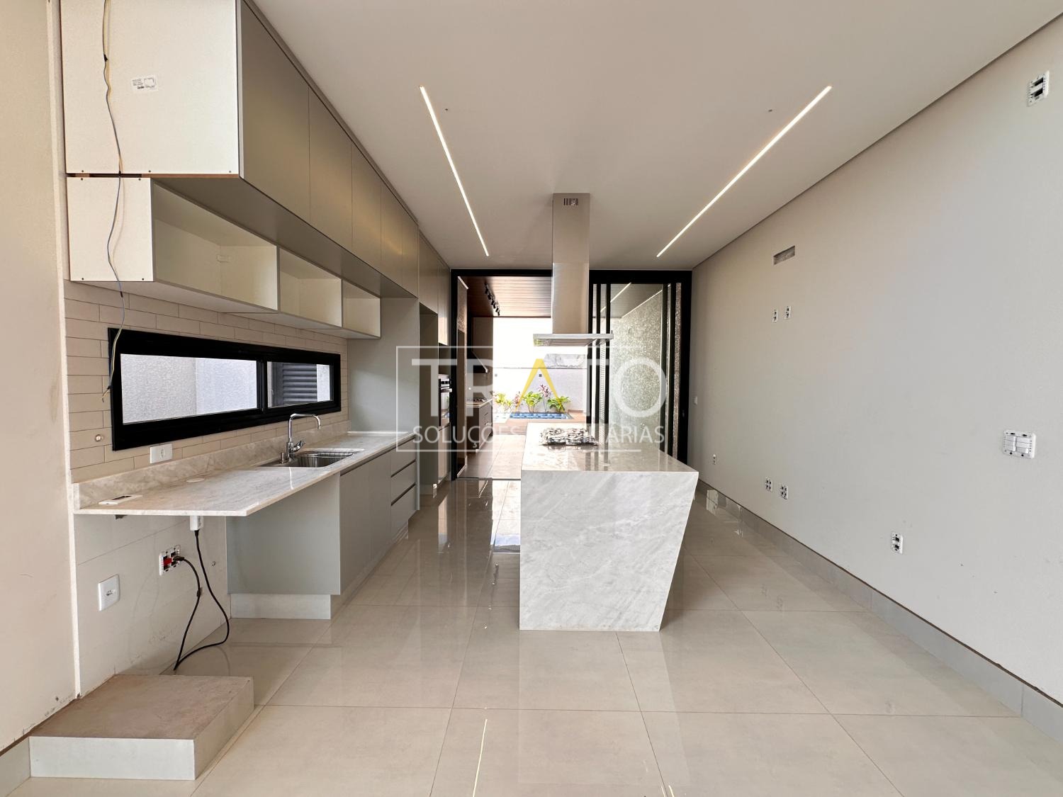 Sala para 2 ambientes com pé direto duplo, cozinha em estilo americano rica em armários planejados; 3 suítes, sendo 1 suíte máster com closet; escritório; área gourmet com churrasqueira e quintal.