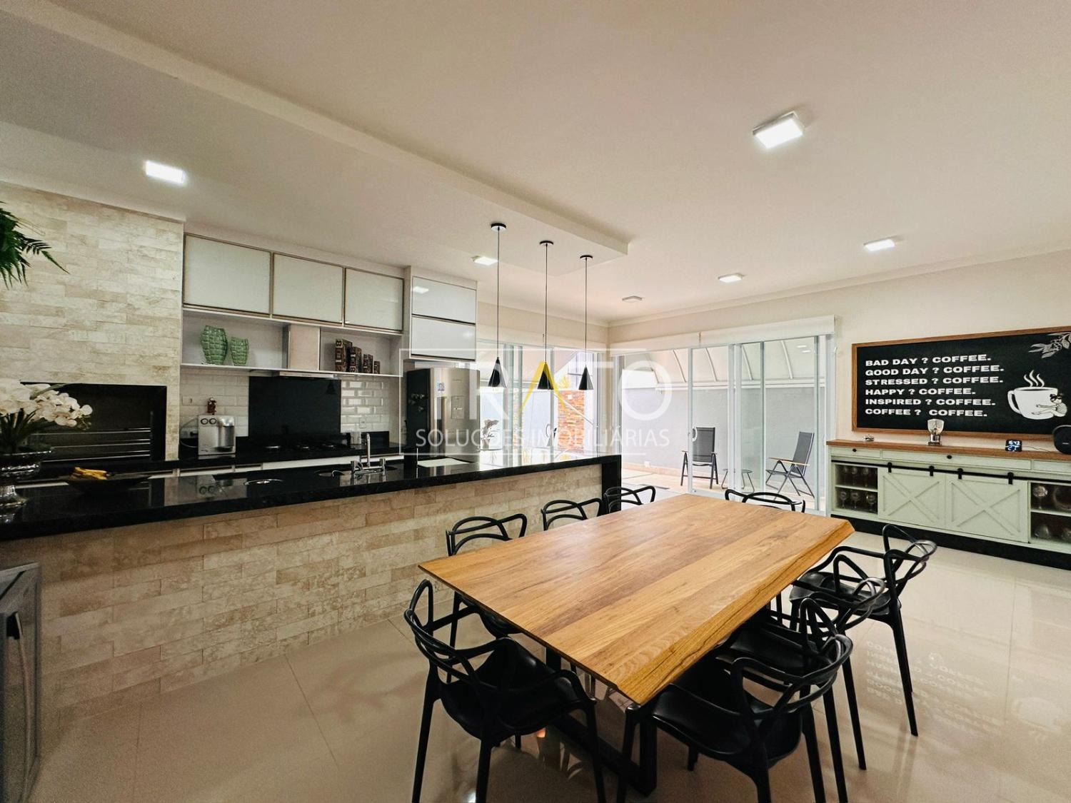 Ar condicionado em todos os ambientes, persianas automatizadas.