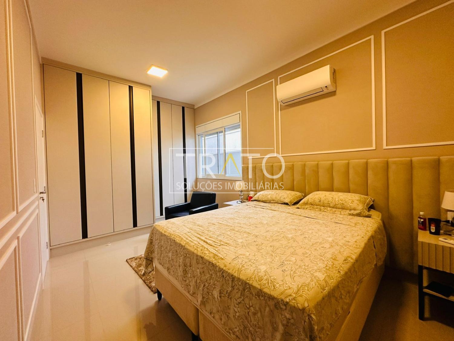 Casa à venda, no condomínio Vila Bela Siena em Paulínia! Térrea, construída em um terreno com metragem de 420 m2, fino acabamento. Sala ampla para 2 ambientes (sala de tv e sala de jantar) com pé direito alto, com 4 suítes, sendo 1 máster com closet e Hidro, 1 suíte estilo Demi- suíte, todas suítes com armários planejados e ar condicionados, cozinha planejada integrada a área gourmet com churrasqueira, rica em armários planejados, cooktop, forno, banheiro de apoio a churrasqueira, área de serviço com e um excelente quintal com piscina, piso todo em porcelanato, aquecimento solar, casa com elevado padrão de construção e acabamento.
