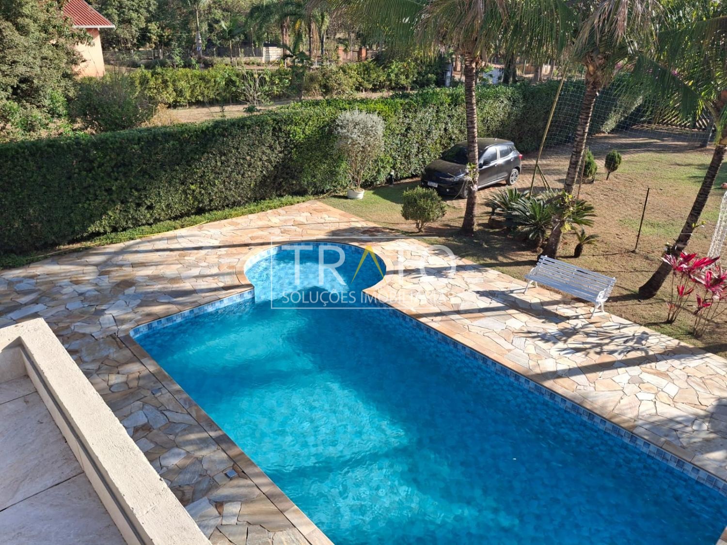 mesa de sinuca, toldos, câmeras de segurança, pomar, galinheiro, lago de pesca com peixe.