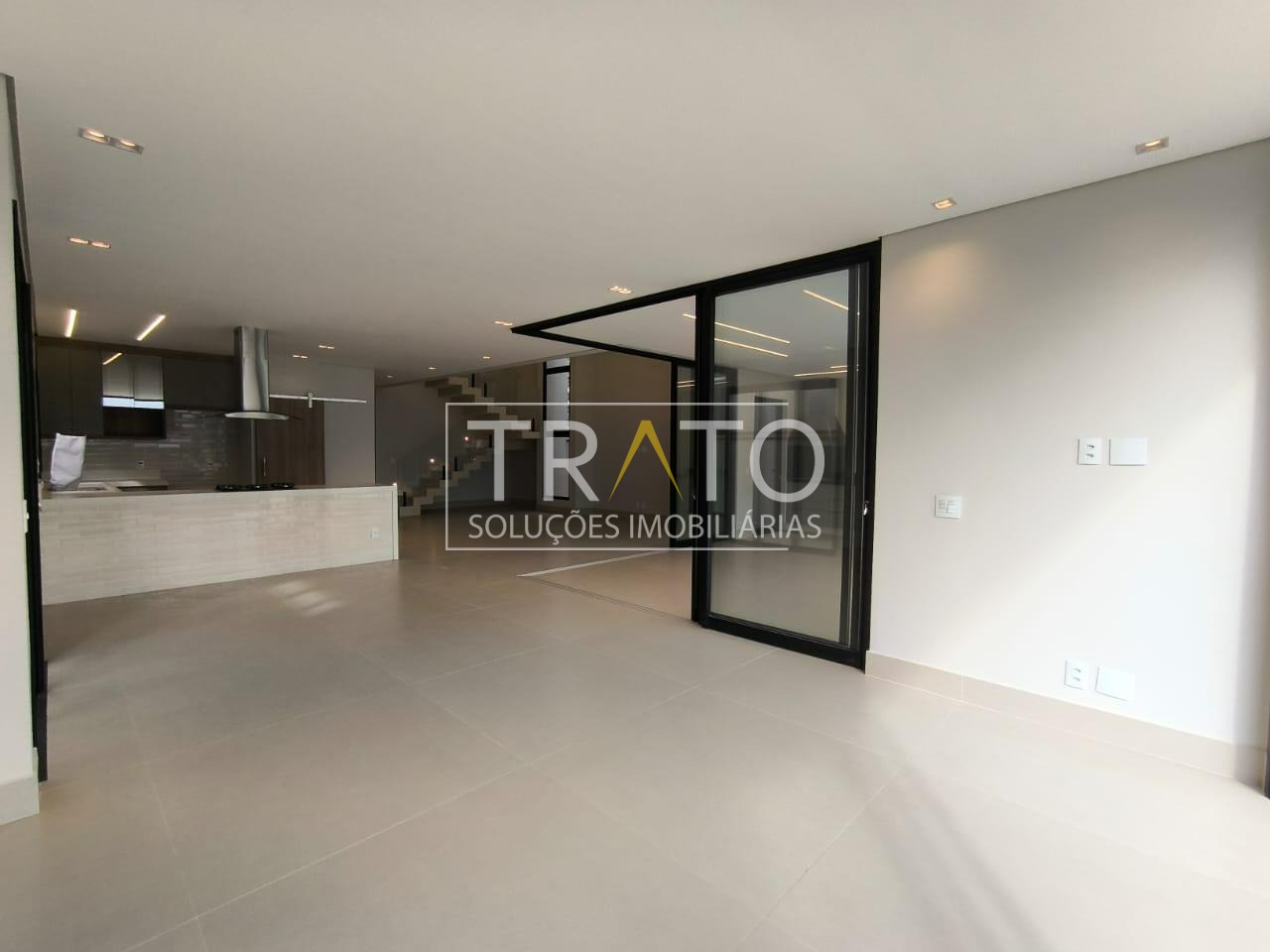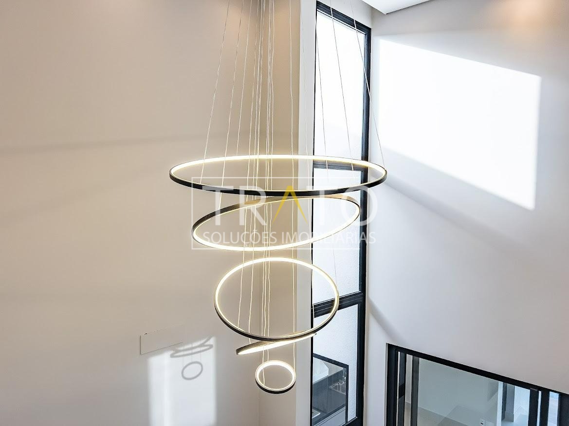 Ambientes integrados: sala de estar com pé-direito duplo, jantar e TV, cozinha planejada, despensa com 19m lineares de prateleiras em quartzo branco, área gourmet com portas de vidro de abertura total e lavanderia planejada. Garagem para 4 carros (2 cobertos e 2 descobertos).