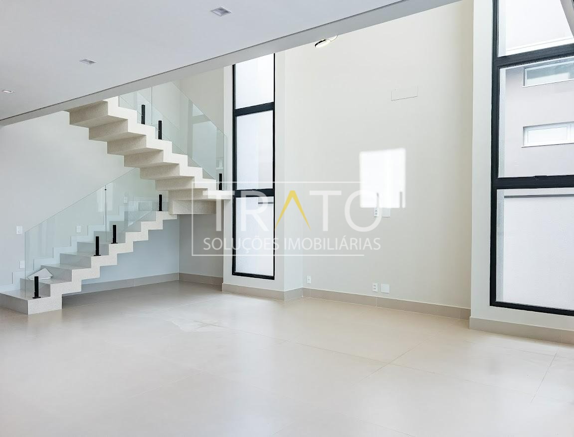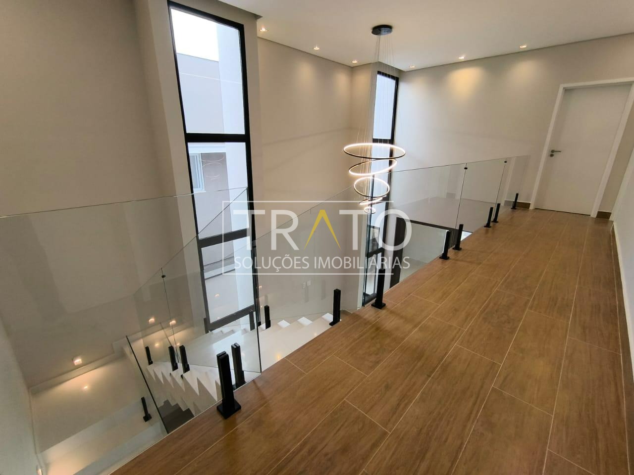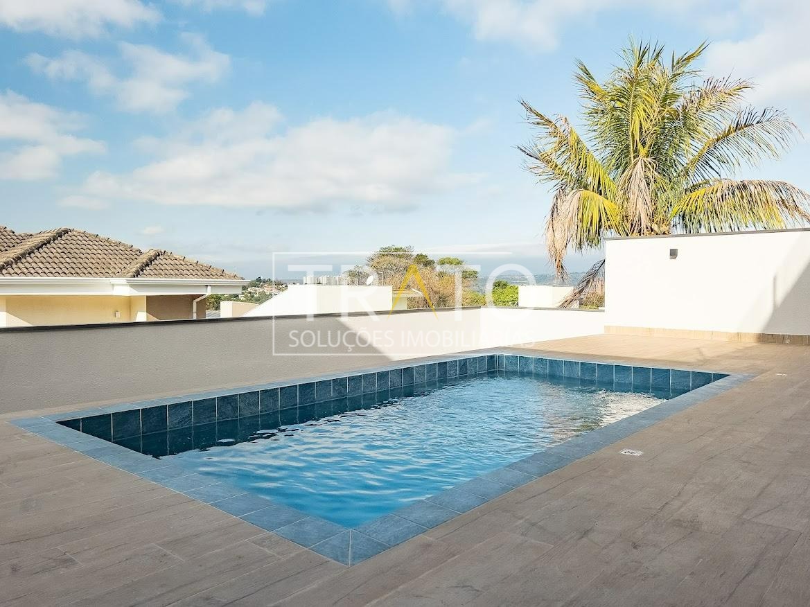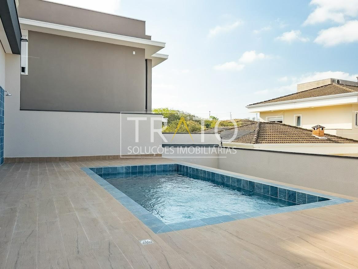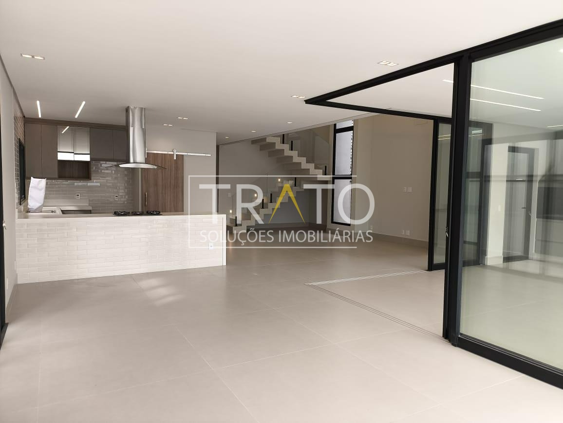 Residência moderna no Condomínio Zurich Dorf, Valinhos. Conta com 3 suítes no piso superior e 1 cômodo multiuso no térreo (opção de 4ª suíte ou escritório). São 5 banheiros no total, sendo 3 nas suítes, 1 integrado ao cômodo multiuso (lavabo) e 1 de apoio à área gourmet.
