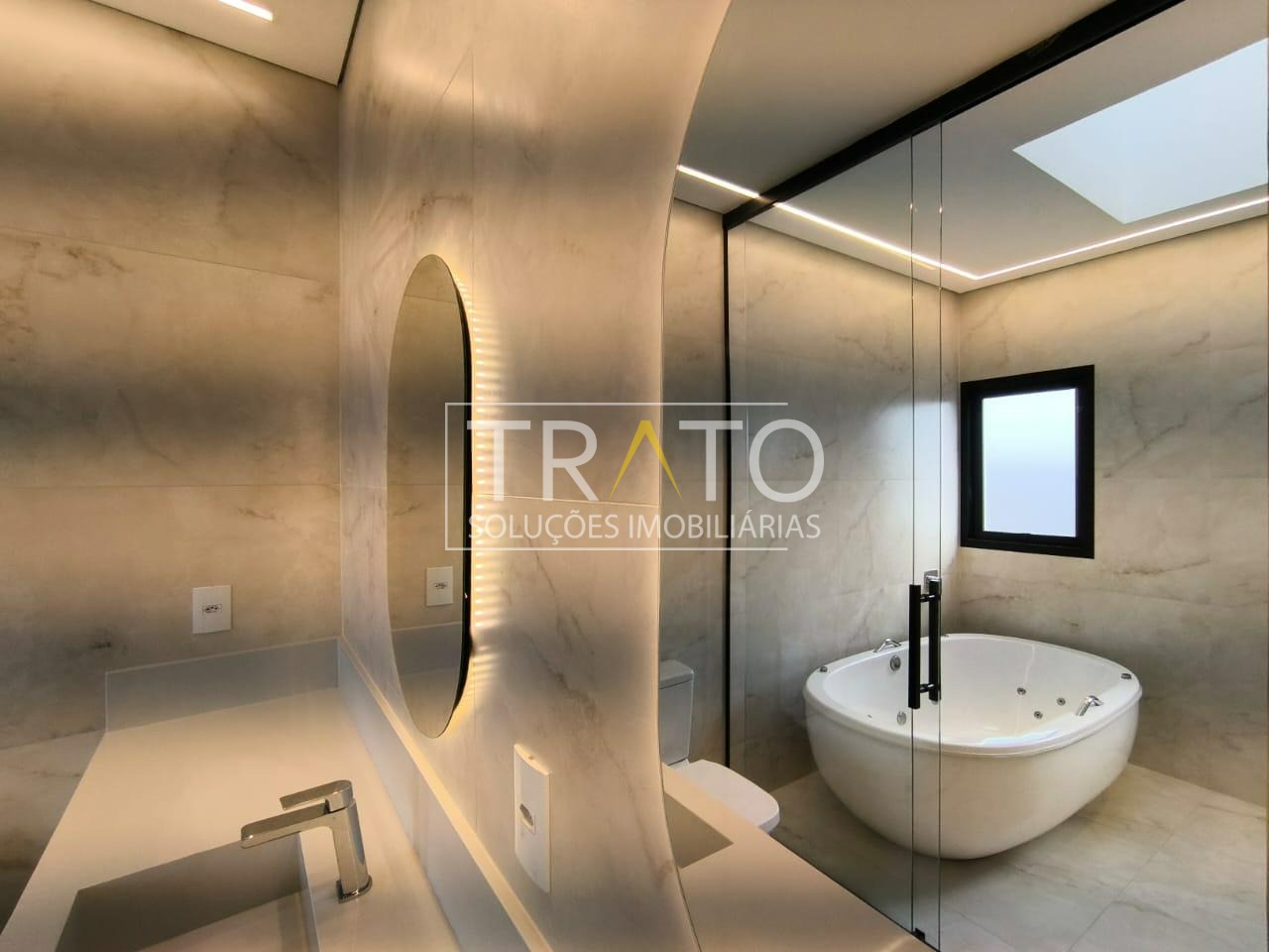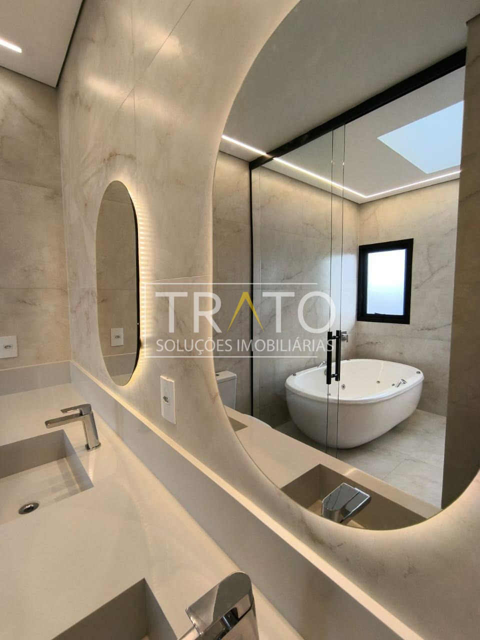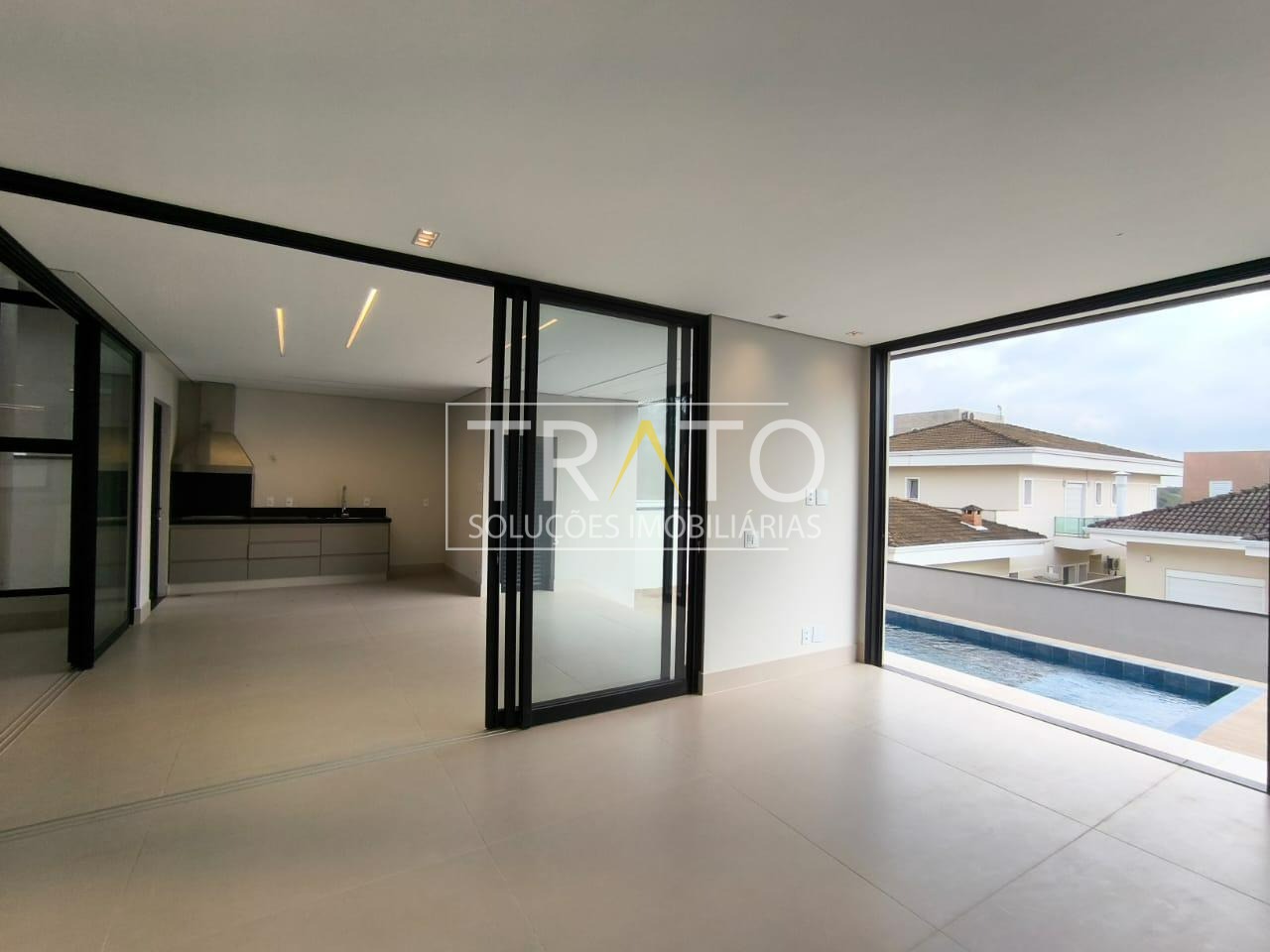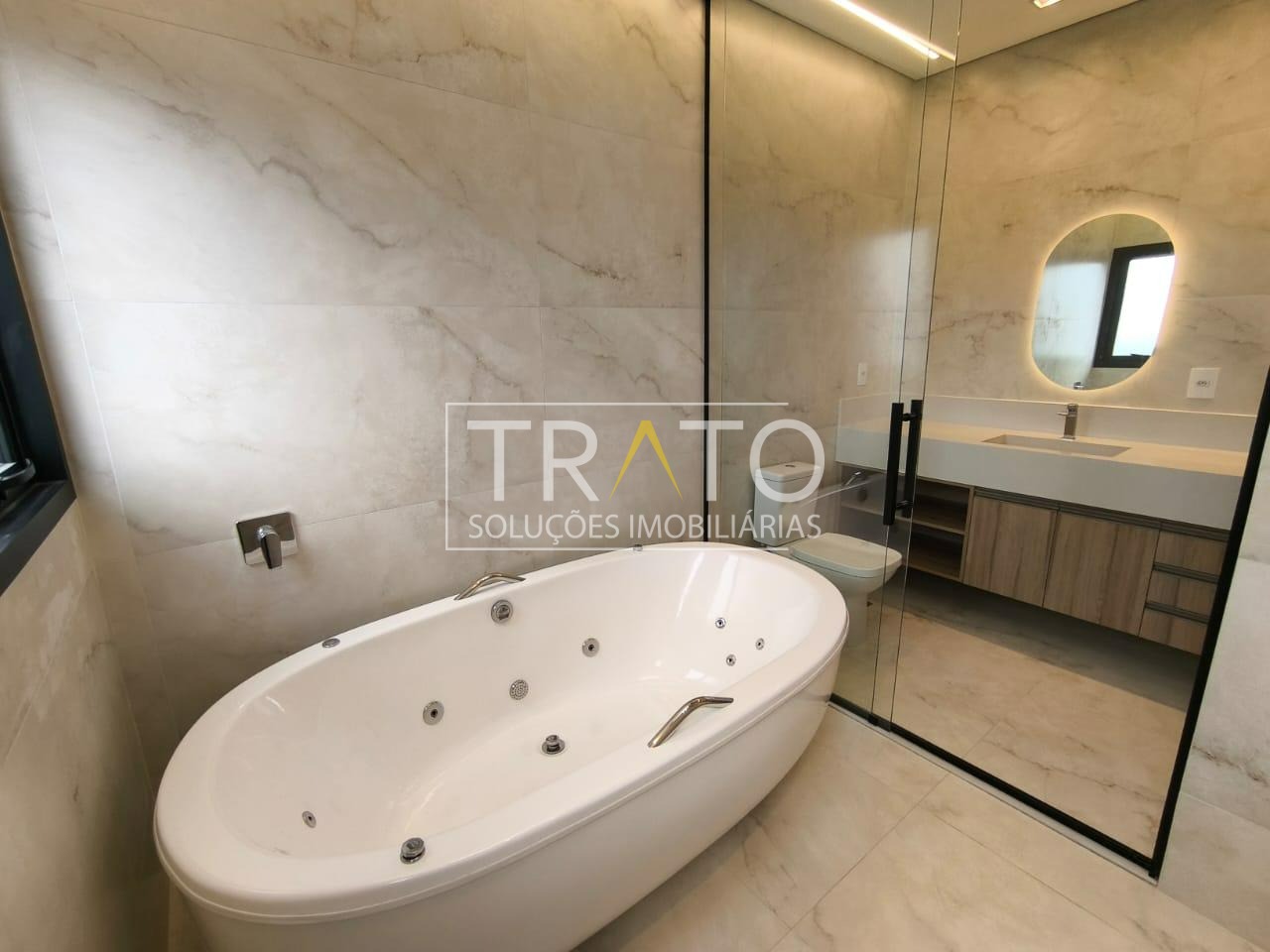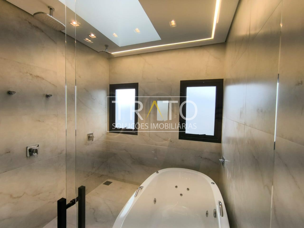 Residência moderna no Condomínio Zurich Dorf, Valinhos. Conta com 3 suítes no piso superior e 1 cômodo multiuso no térreo (opção de 4ª suíte ou escritório). São 5 banheiros no total, sendo 3 nas suítes, 1 integrado ao cômodo multiuso (lavabo) e 1 de apoio à área gourmet.