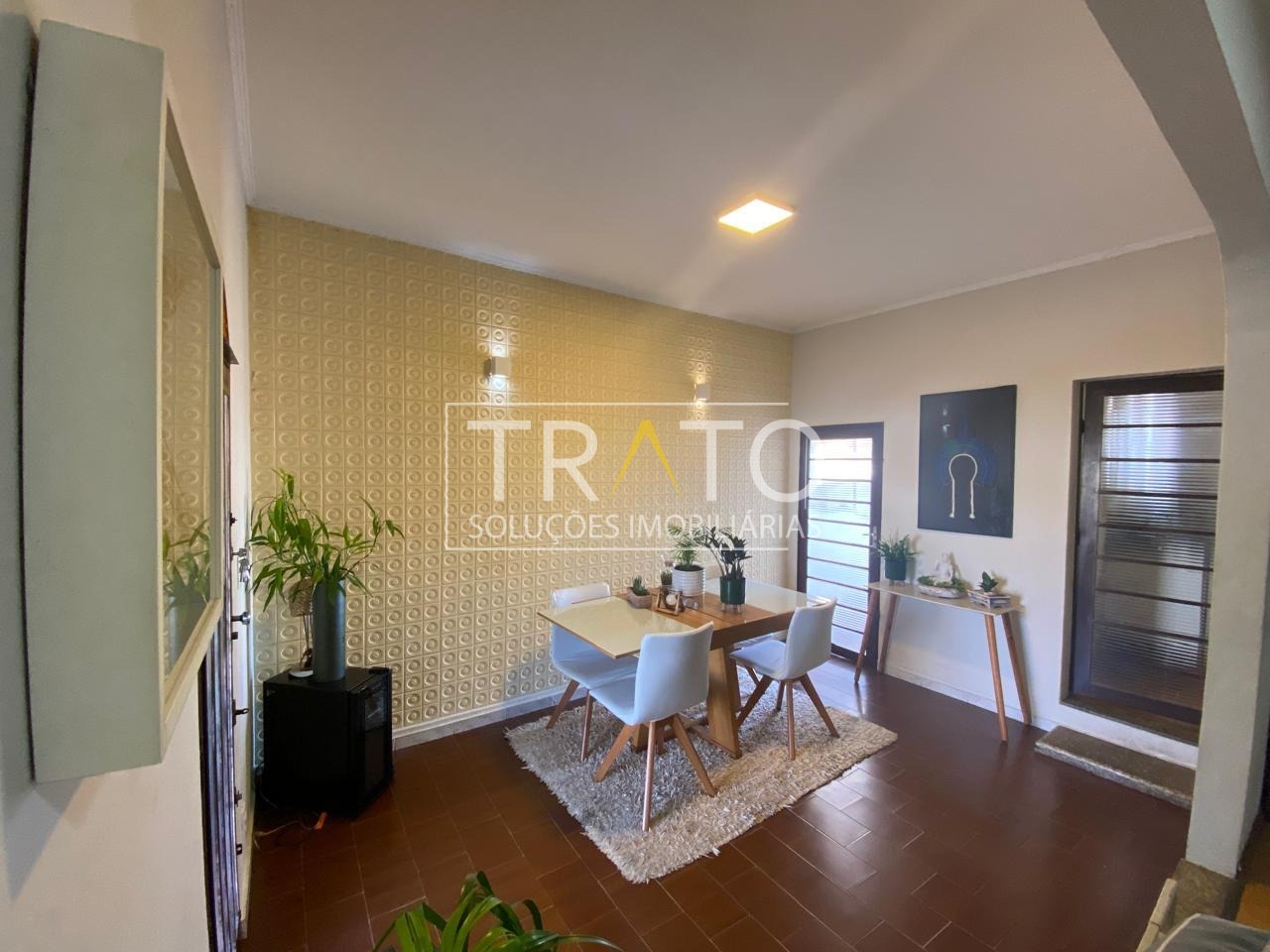 Conta com garagem descoberta para 2 carros, hall de entrada, sala de estar, sala de TV, 3 quartos (sendo 1 suíte), cozinha, ampla sala de refeições externa com espaço para mesa de 10 a 12 pessoas, área de serviço/lavanderia, despensa coberta no quintal e 2 banheiros (incluindo o da suíte).