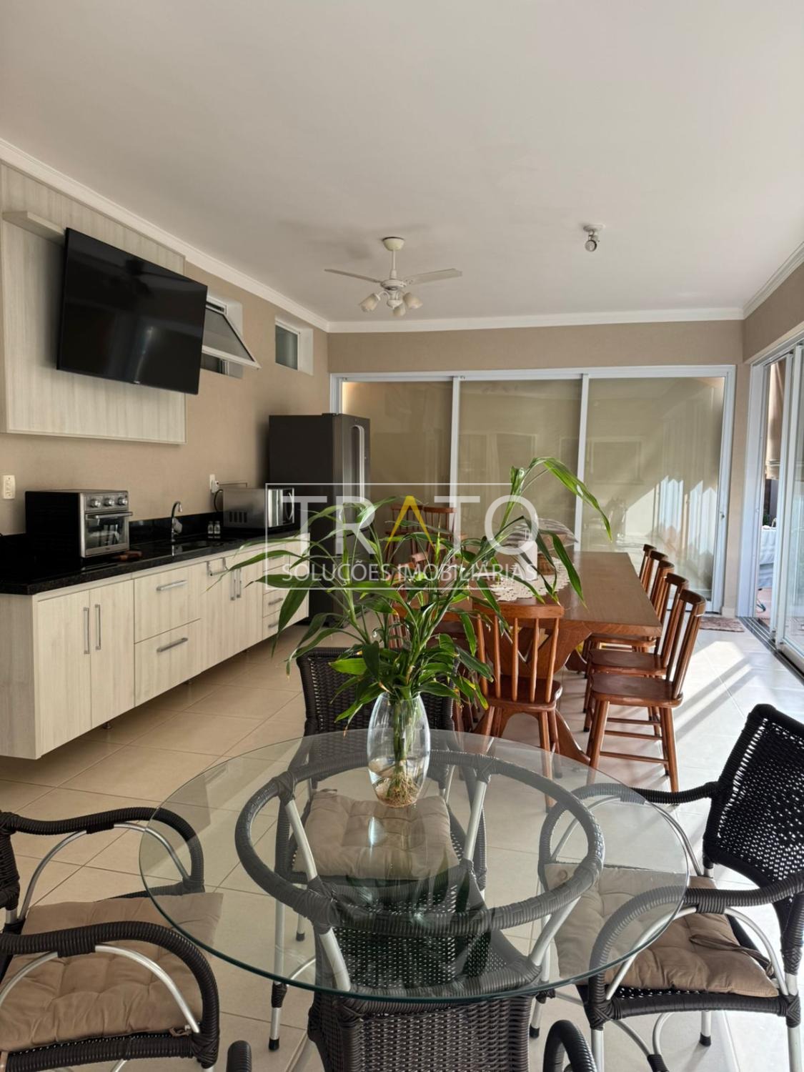 No piso inferior: sala para 2 ambientes com pé-direito duplo, cozinha americana rica em armários planejados, lavabo e espaço gourmet com churrasqueira.