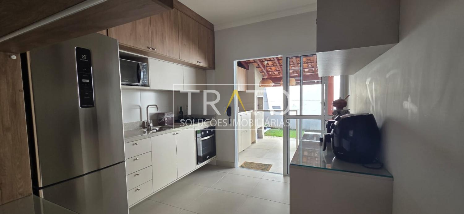 Casa em condomínio fechado à venda em Hortolândia/SP. Casa de alvenaria com 75m2 de construção e terreno 151m2. São 2 quartos (uma suíte), terceiro dormitório transformado em escritório, sala, cozinha, área gourmet, lavanderia e churrasqueira. Vaga para 2 carros.