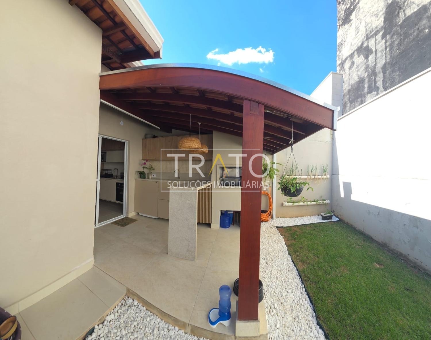 - Despensa no corredor lateral com portas em alumínio com espaço para ferramentas/máquina de cortar grama