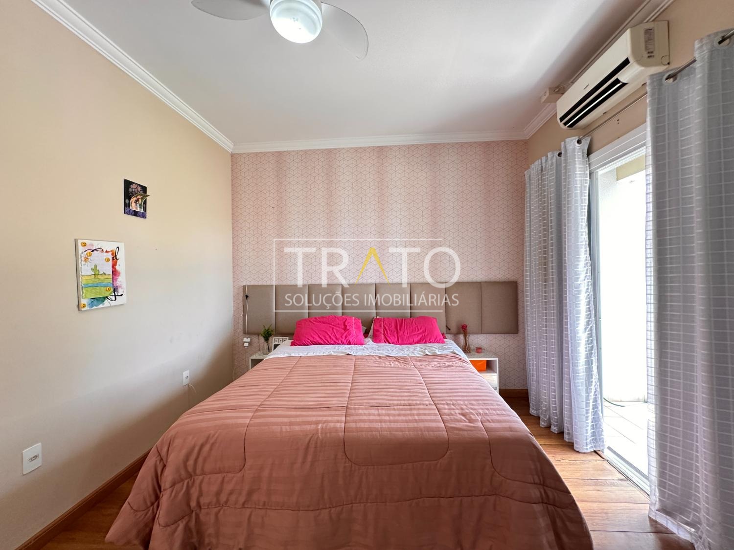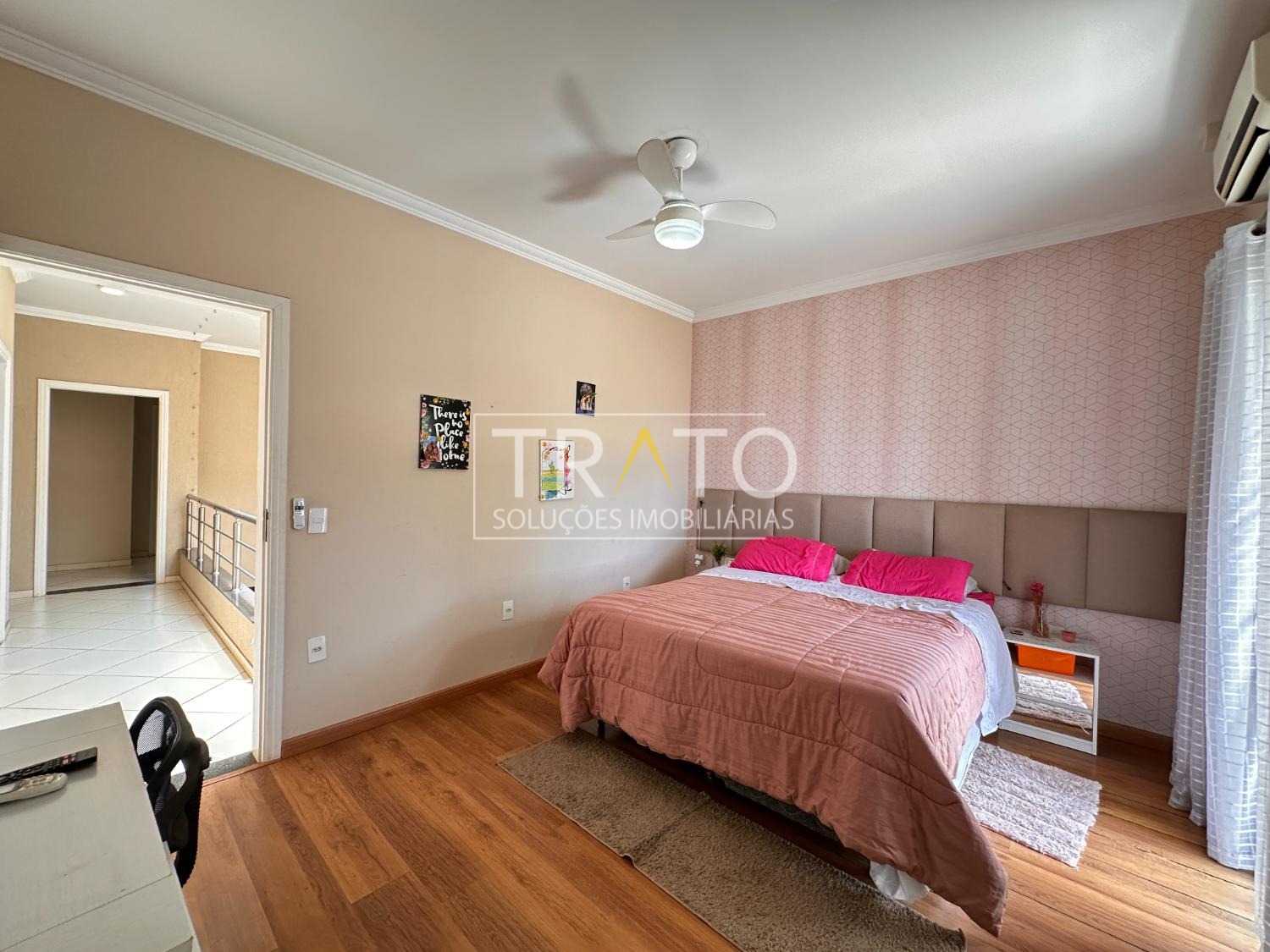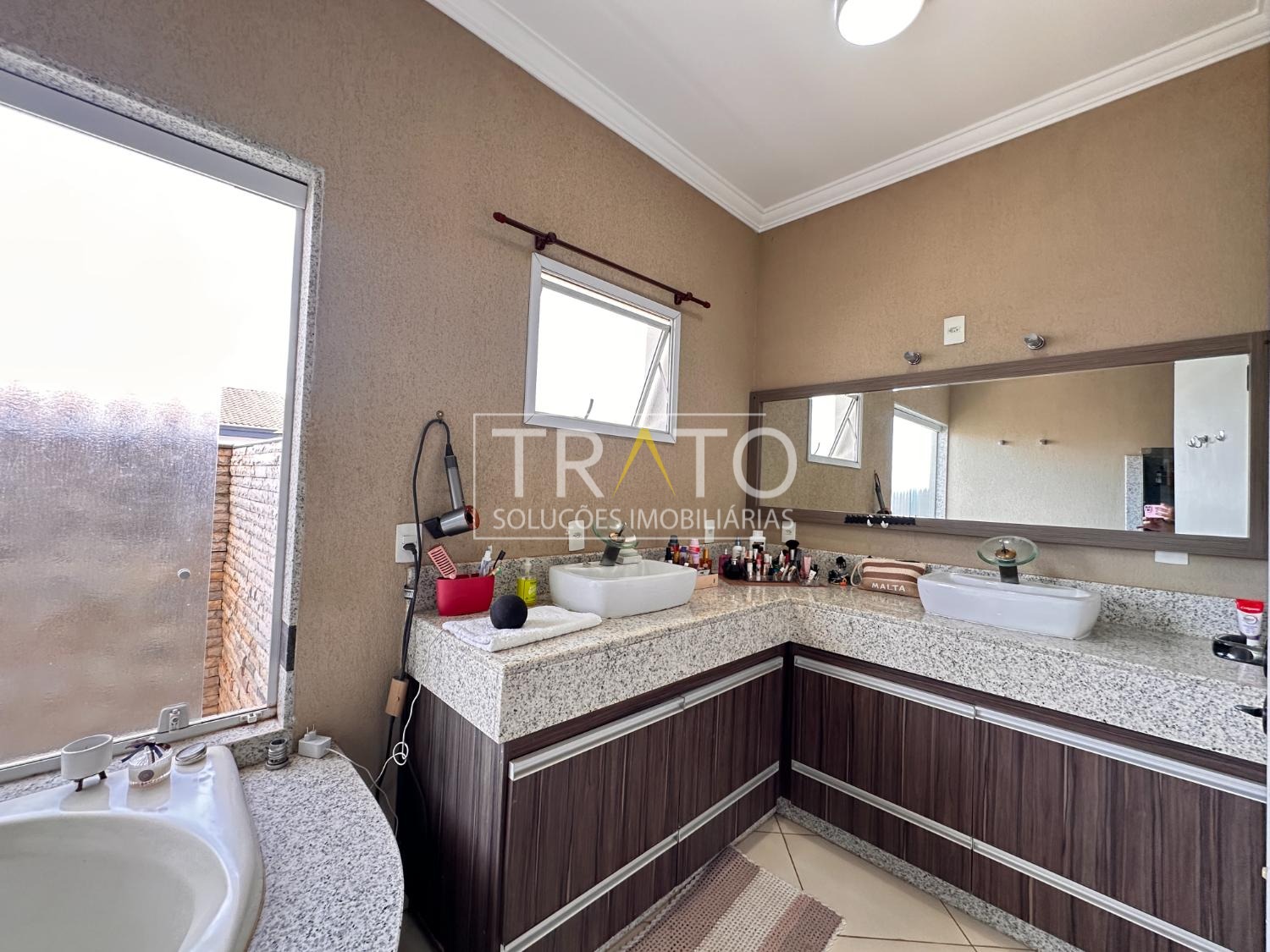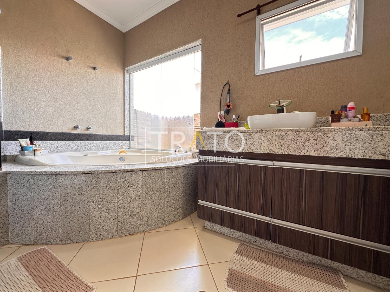 Ampla casa de 261 metros no condomínio Raízes em Paulínia. Próximo a Rodovia Professor Zeferino Vaz, Colégio Cosmos. São 3 amplos quartos, sendo 3 suítes, 1 suíte, suíte com closet e sacada, todos os quartos com ar condicionado, todos quartos com armários planejados.