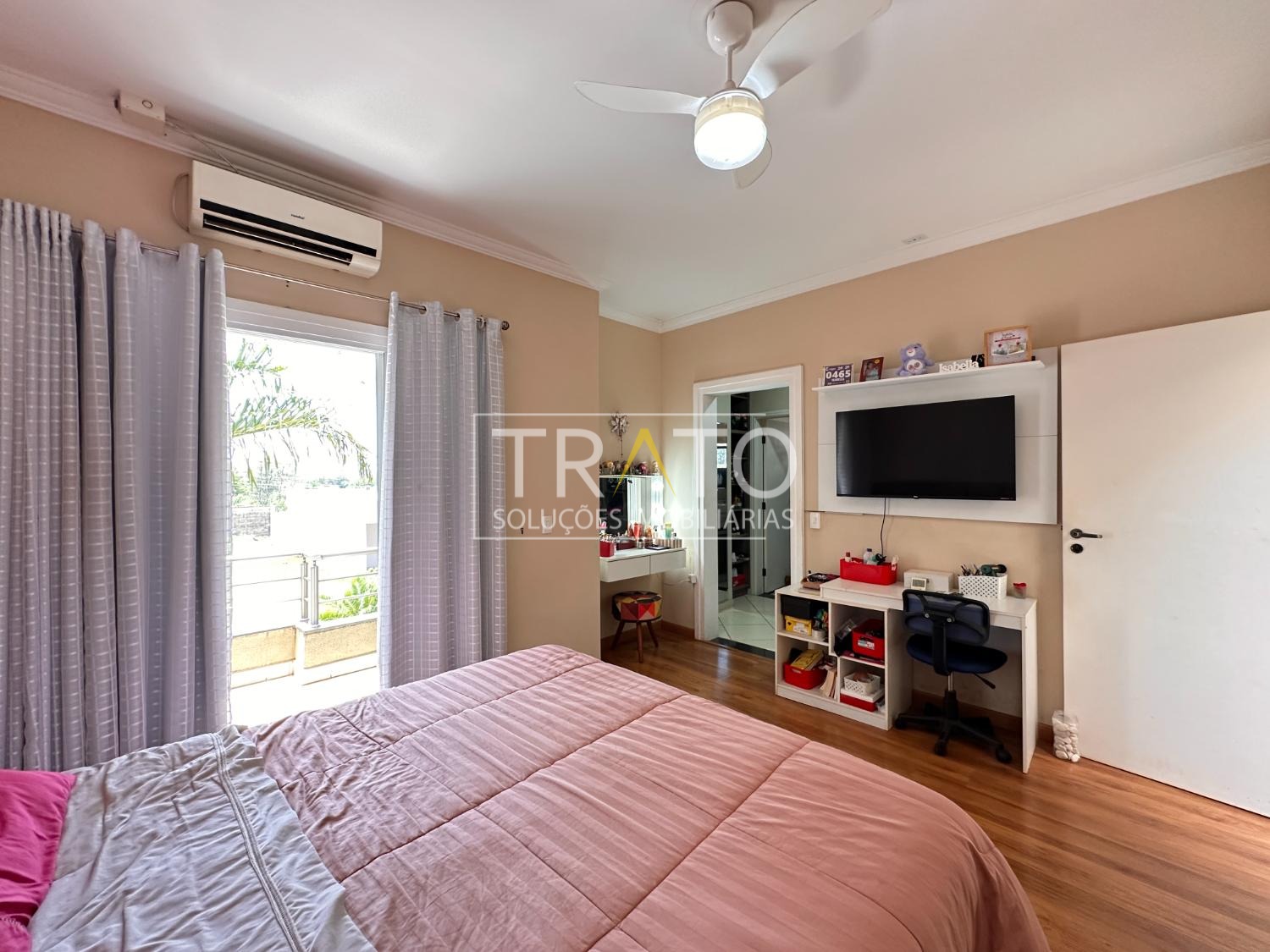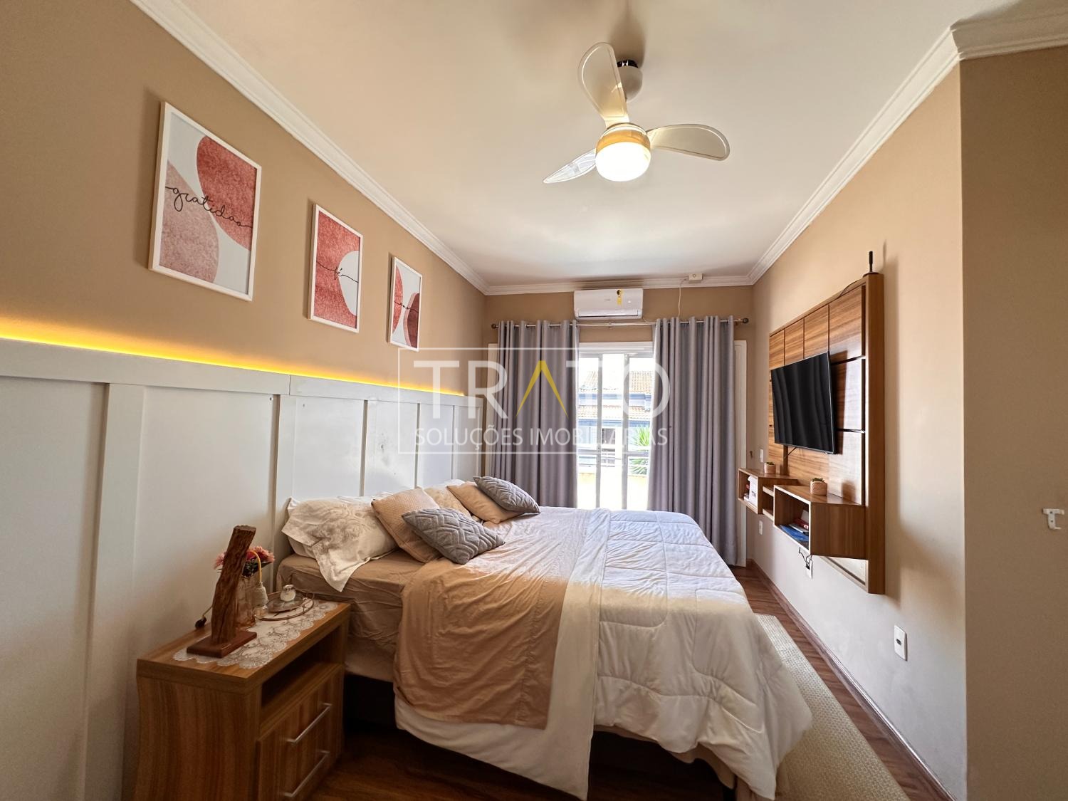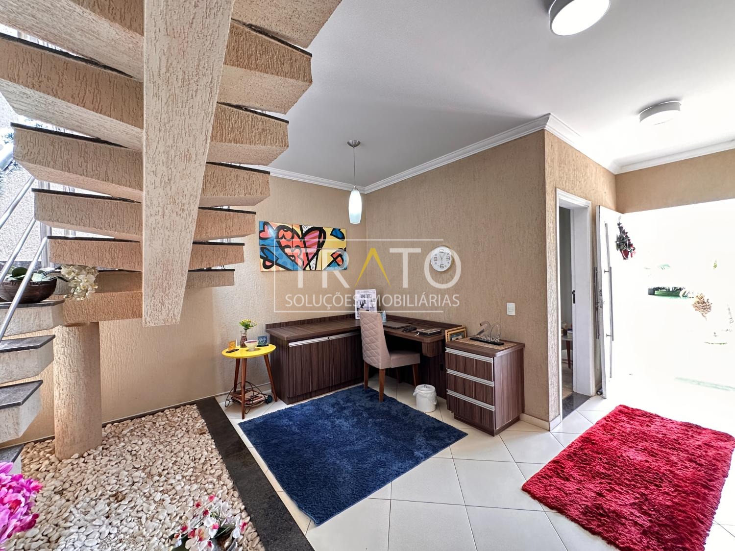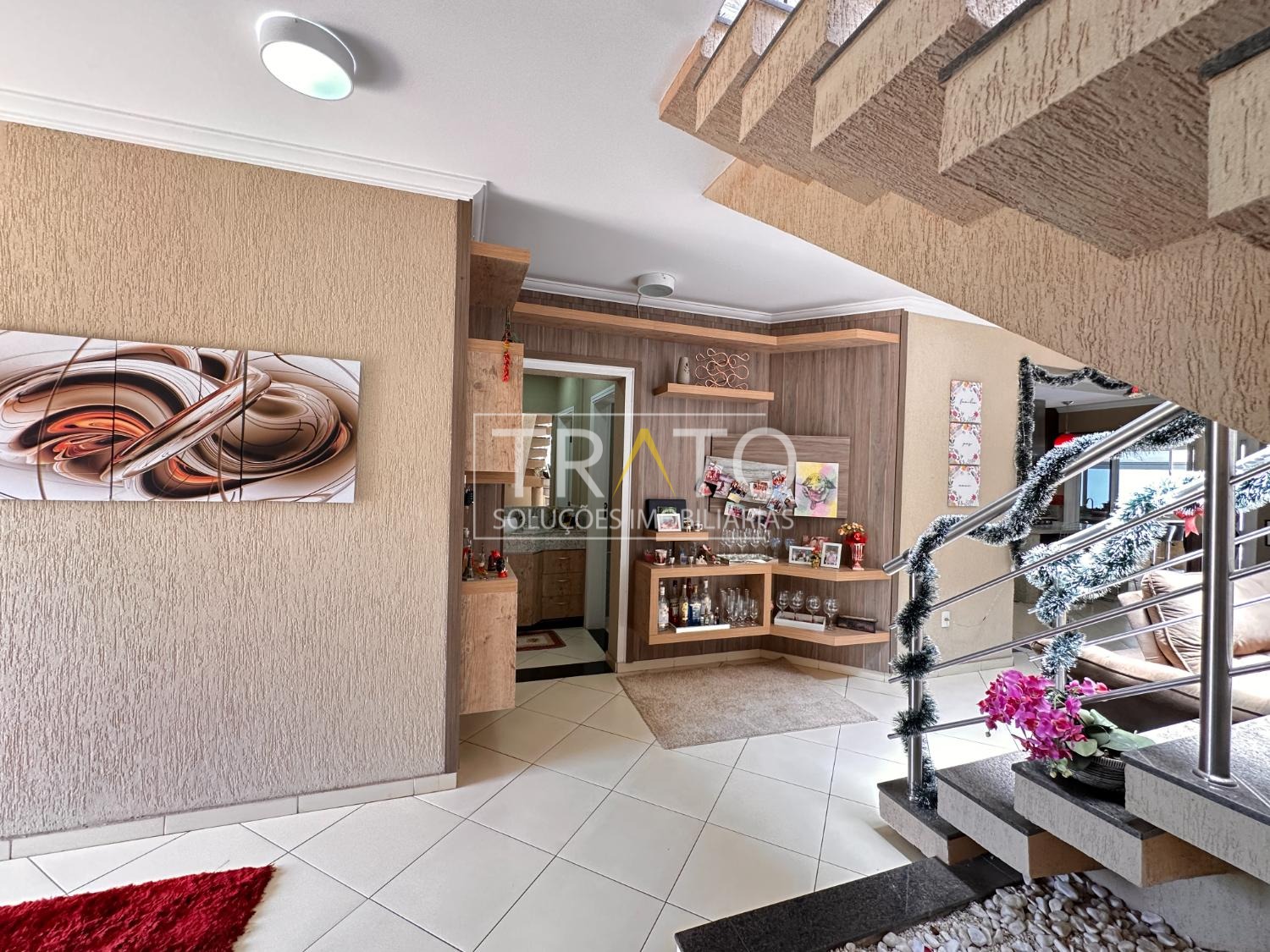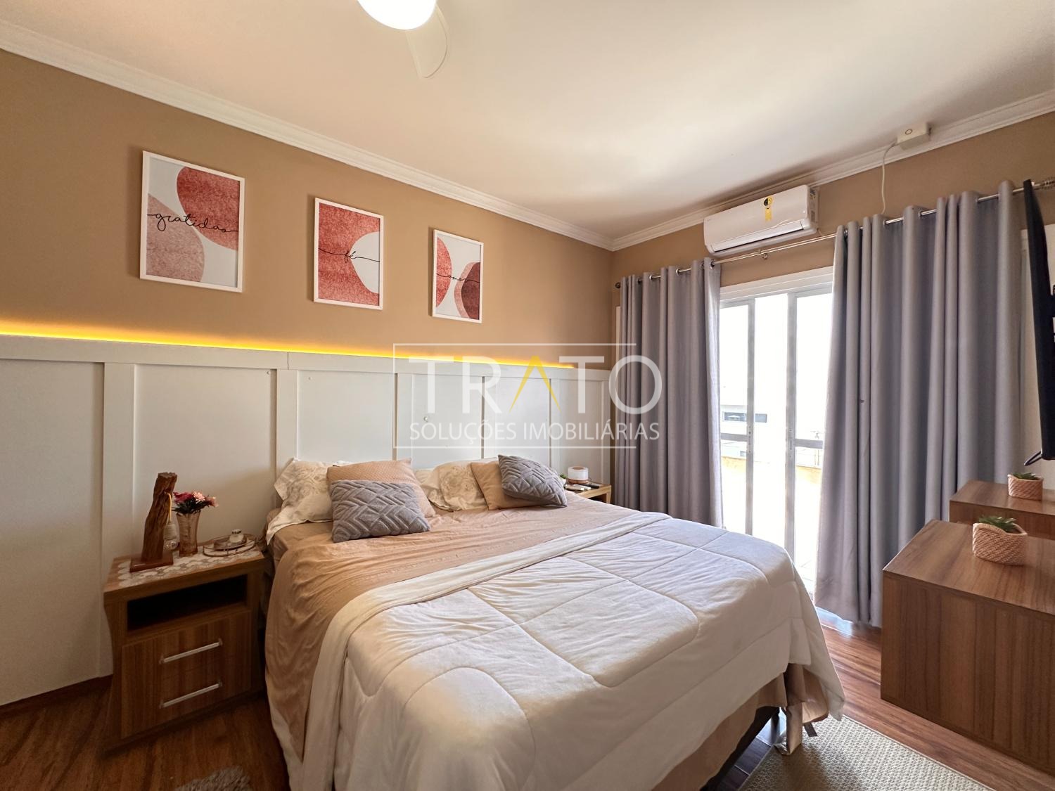 Ampla casa de 261 metros no condomínio Raízes em Paulínia. Próximo a Rodovia Professor Zeferino Vaz, Colégio Cosmos. São 3 amplos quartos, sendo 3 suítes, 1 suíte, suíte com closet e sacada, todos os quartos com ar condicionado, todos quartos com armários planejados.