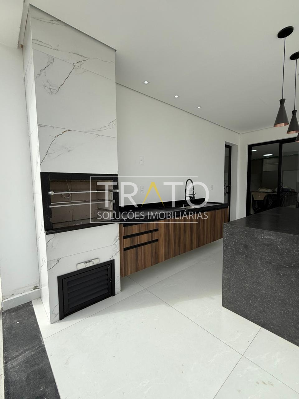 * Ilha e bancadas da cozinha feitas em porcelanato