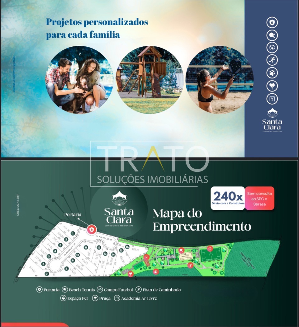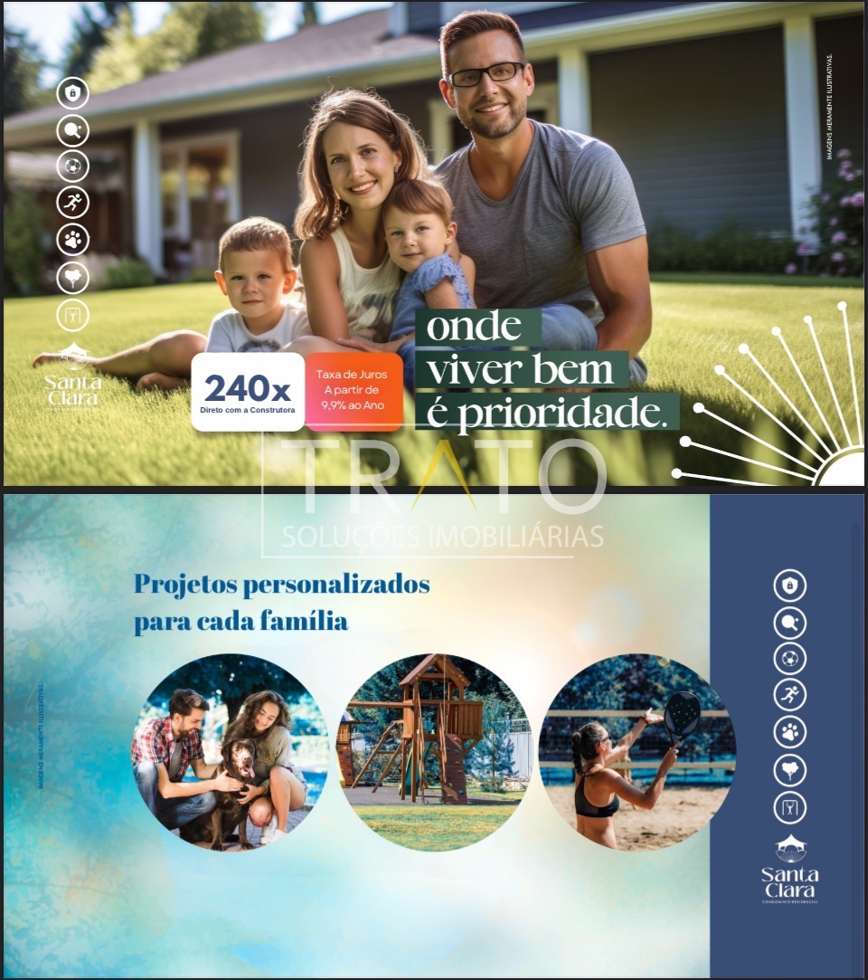 Condomínio Santa Clara Viva Conforto, segurança e contato com a natureza em um só lugar. O Santa Clara Viva é um condomínio fechado com apenas 16 terrenos exclusivos, com o projeto da casa a ser construído embutido no valor já, ideal para quem busca tranquilidade, privacidade e qualidade de vida.