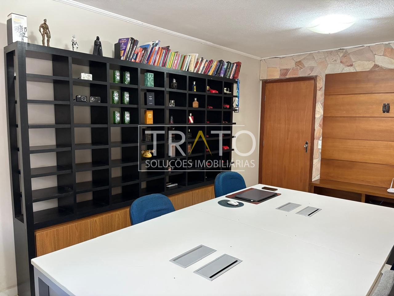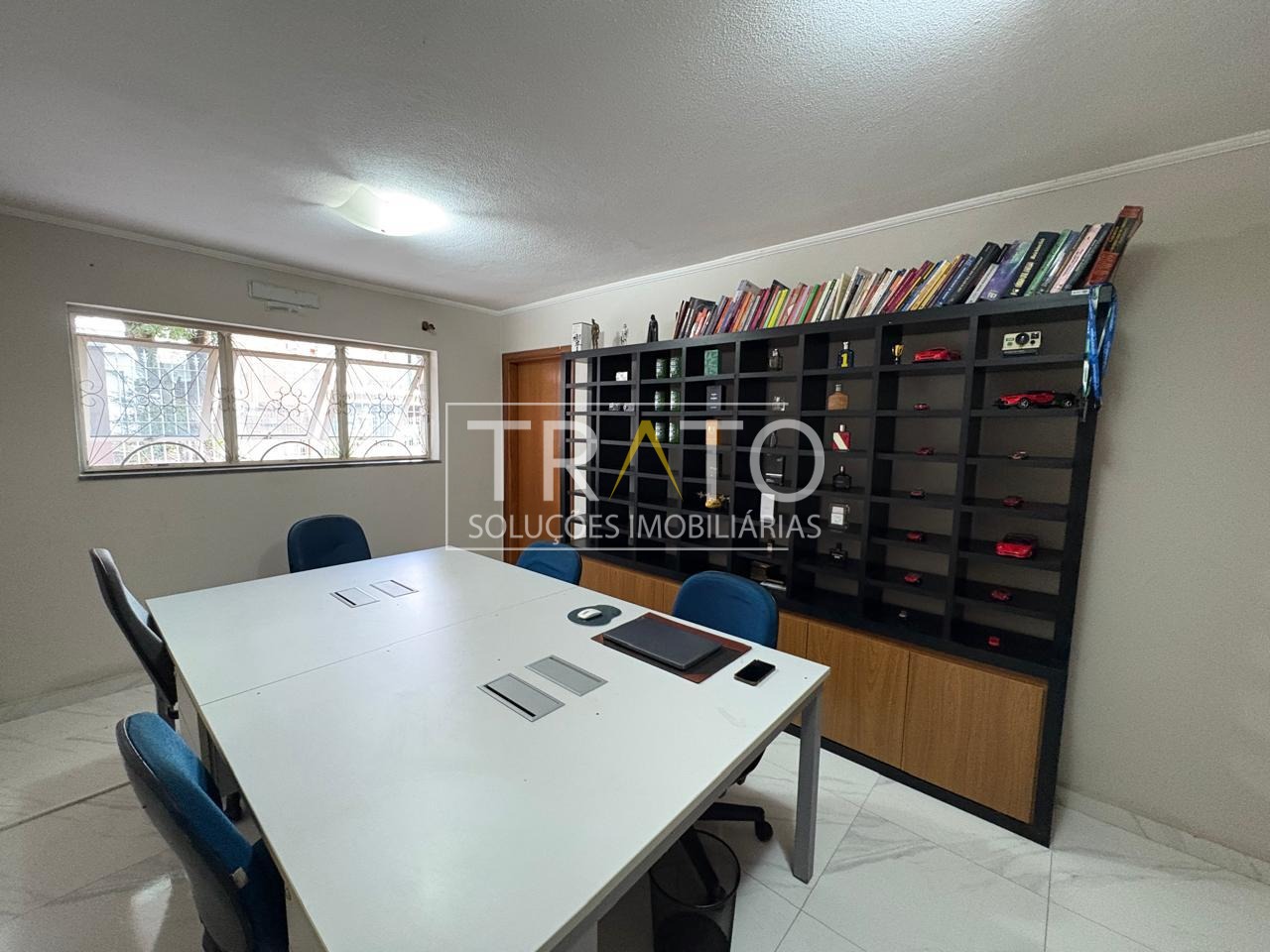 Sala de TV, sala de estar, sala de jantar, escritório, dois lavabos, cozinha com armário e lavanderia.