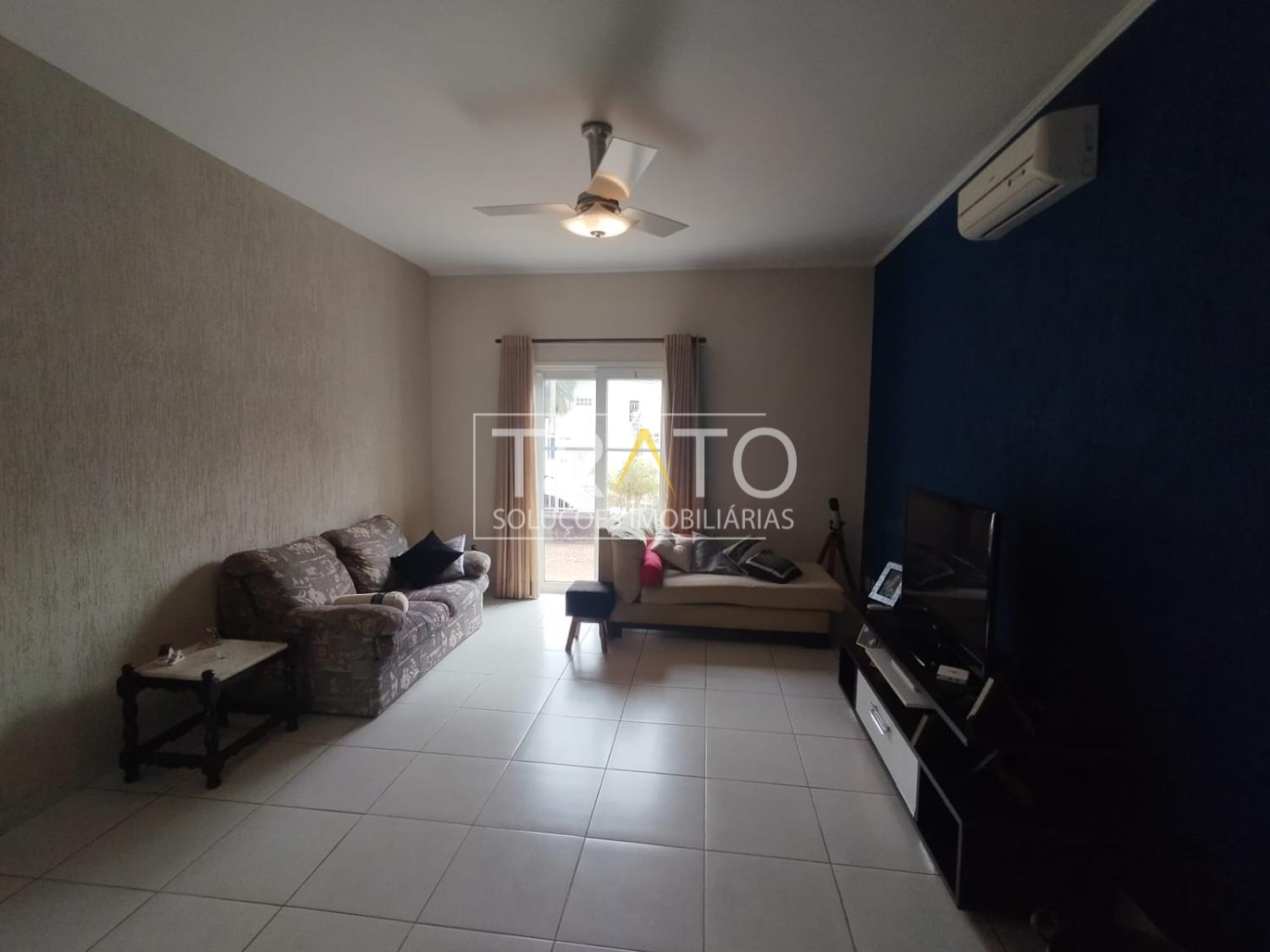 Sala de TV aconchegante integrada à sala de jantar, ideal para receber