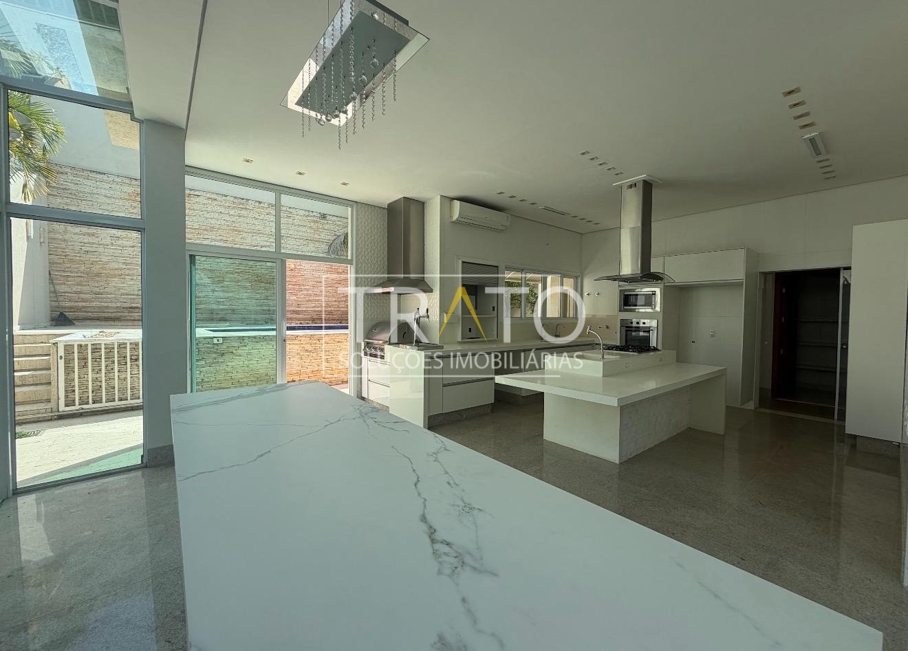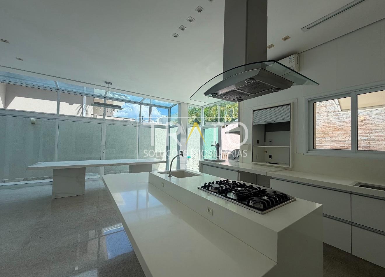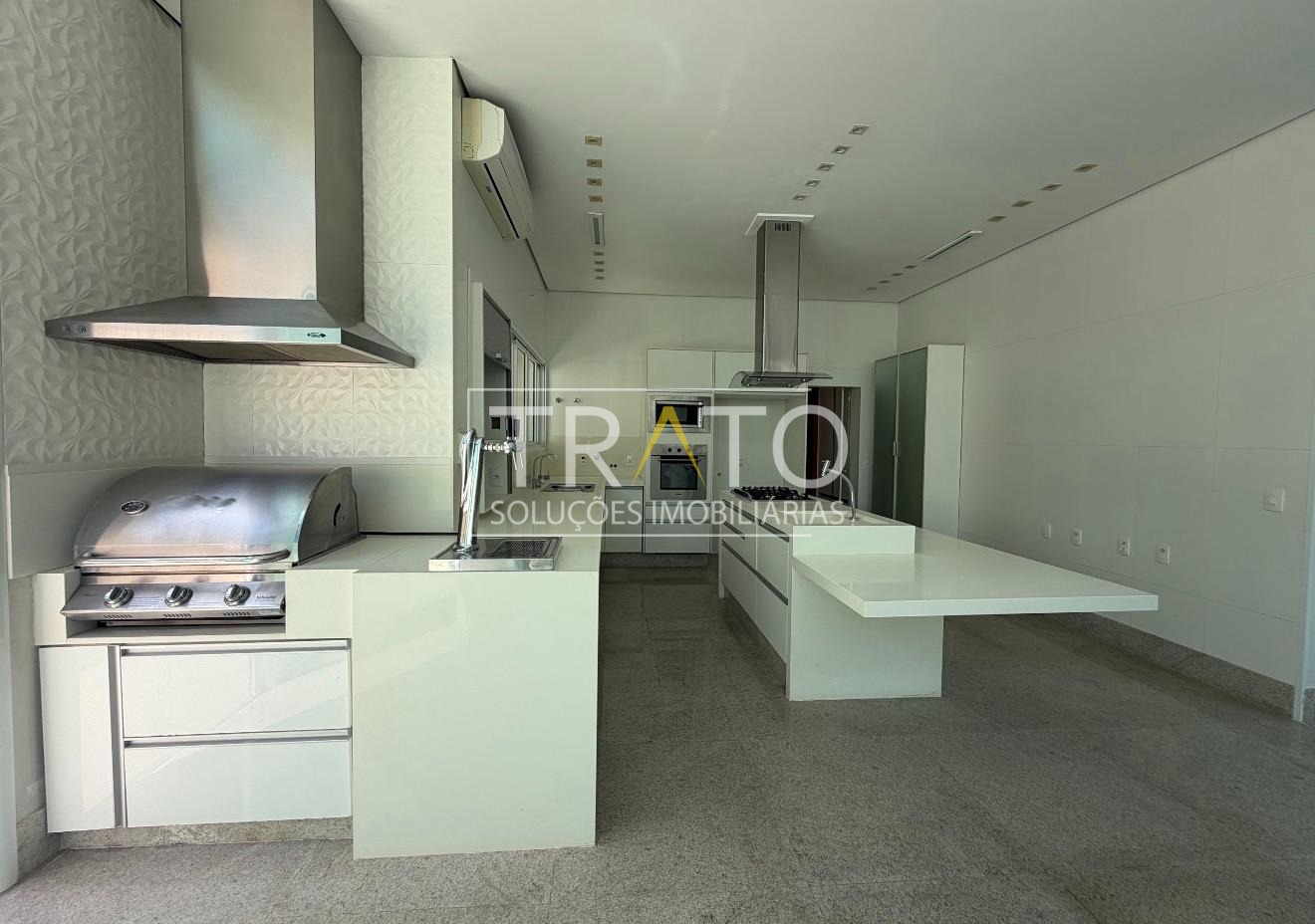 A cozinha ricamente planejada é um verdadeiro destaque, equipada com cooktop, churrasqueira a gás e chopeira, integrando praticidade e sofisticação para quem aprecia receber bem.