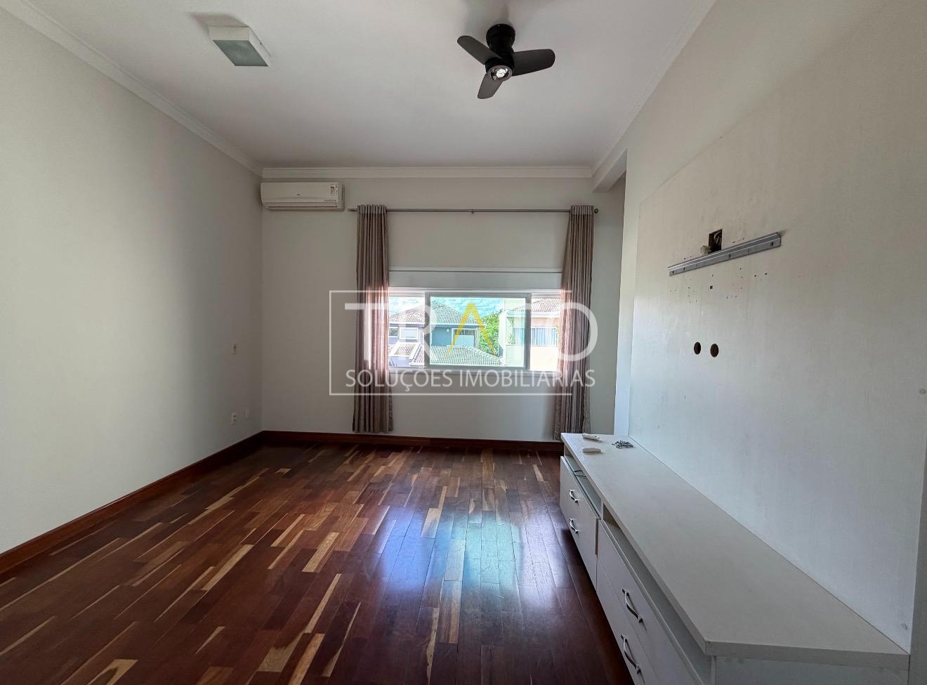 O sobrado conta com 4 suítes, sendo uma no piso térreo, perfeita para hóspedes ou facilmente revertida em escritório, atendendo com conforto às necessidades do dia a dia. No piso superior, estão 3 suítes amplas, além de uma sala de TV íntima, criando um espaço acolhedor e reservado para a família.