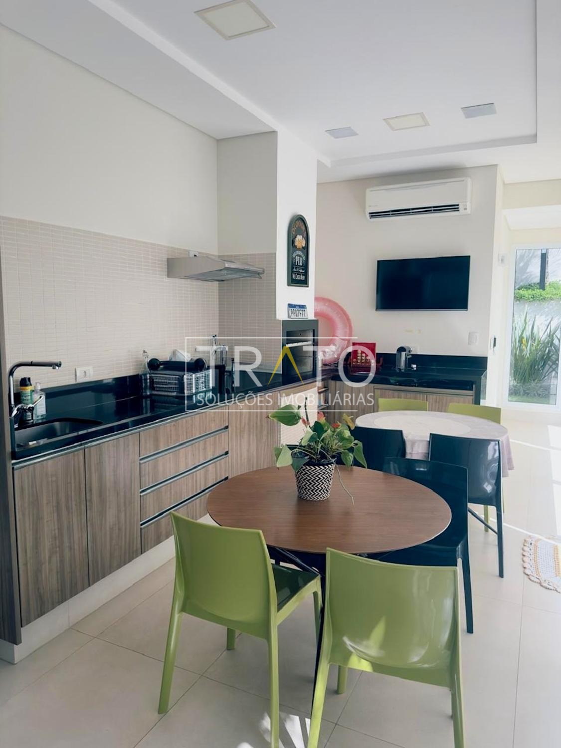 A cozinha integrada à área gourmet é da Florence, com design contemporâneo e excelente funcionalidade.