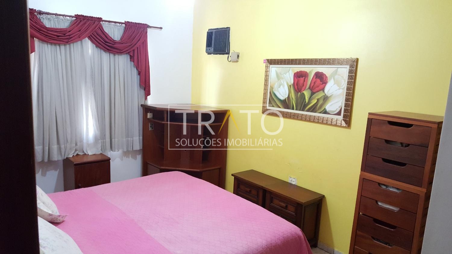 Ar-condicionado nos quartos e na sala.