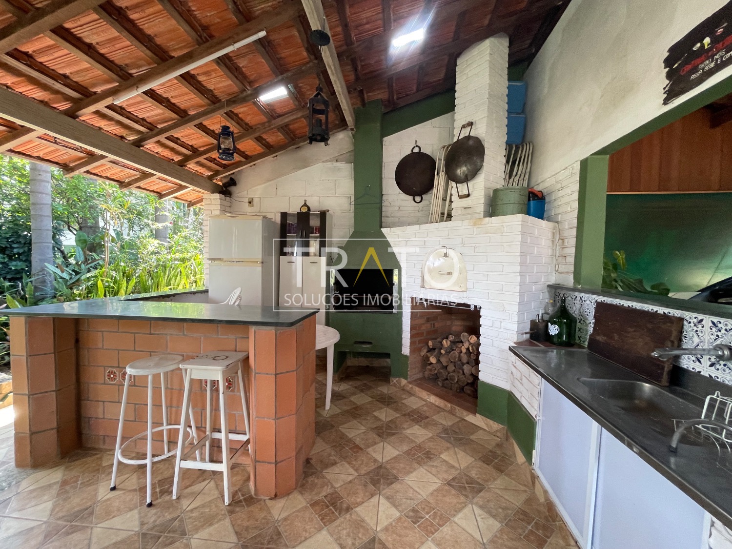 Casa principal composta por 2 dormitórios, sala de televisão, cozinha, copa, lavanderia, varanda e 3 banheiros. Conta ainda com excelente área gourmet equipada com churrasqueira e forno a lenha, piscina, poço caipira, 2 canis e 2 quartos de apoio (depósito).