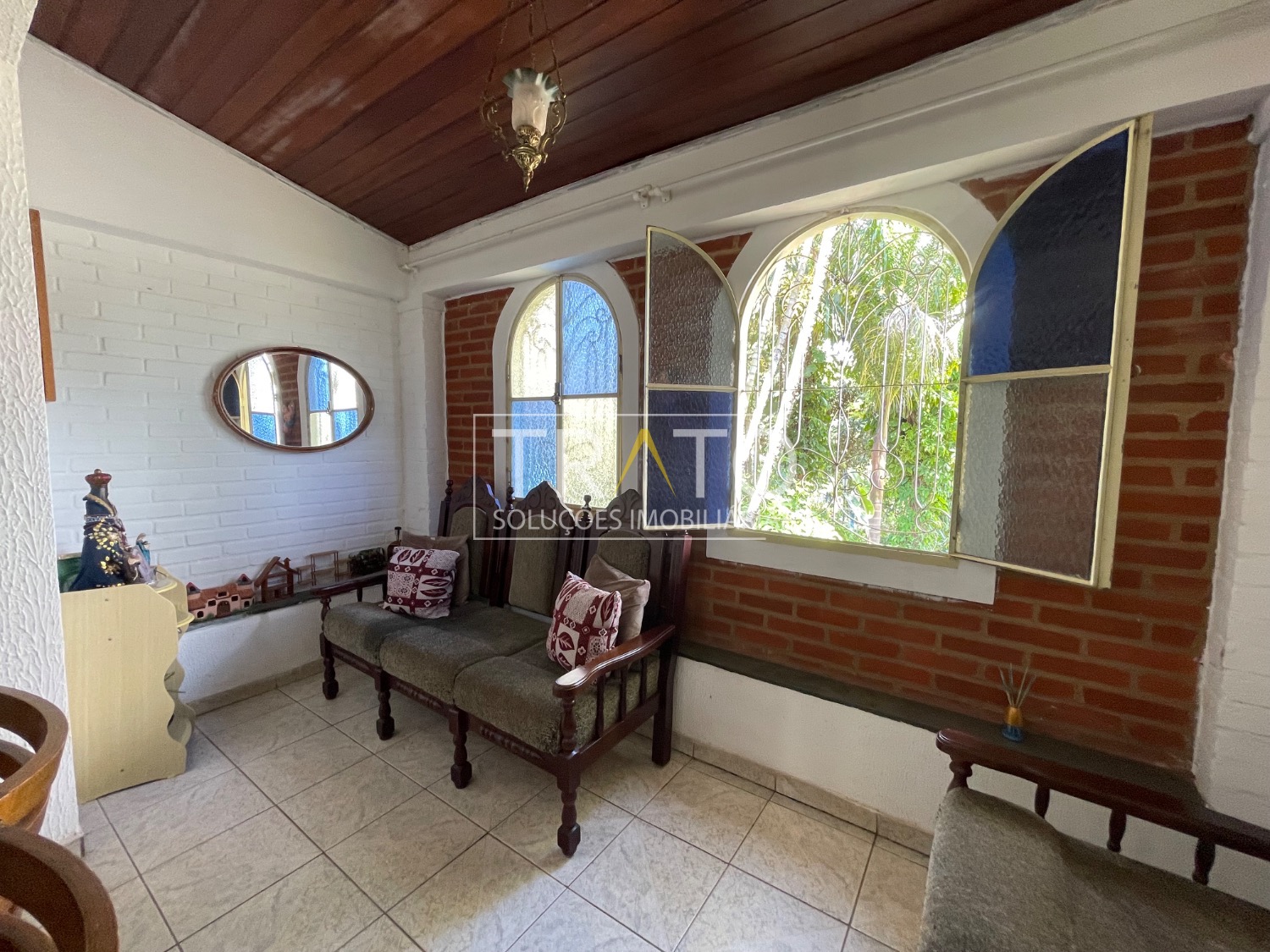 Nos fundos, segunda residência independente com 3 dormitórios, sendo 1 suíte, sala de televisão, cozinha, lavanderia e 2 banheiros, ideal para família grande, hóspedes ou renda extra.