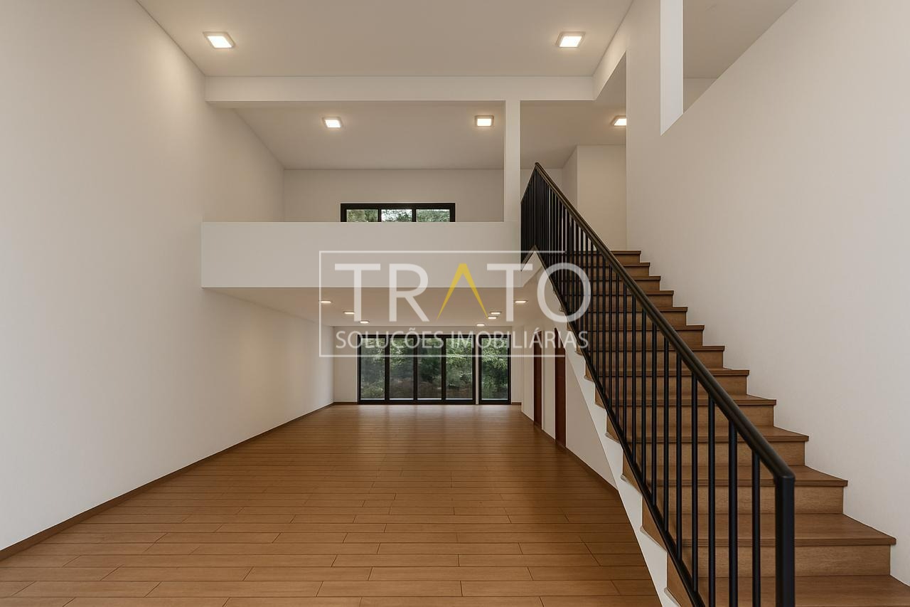 O térreo conta com 240 m², o andar superior possui 90 m², ambos com WC social e WC PNE.