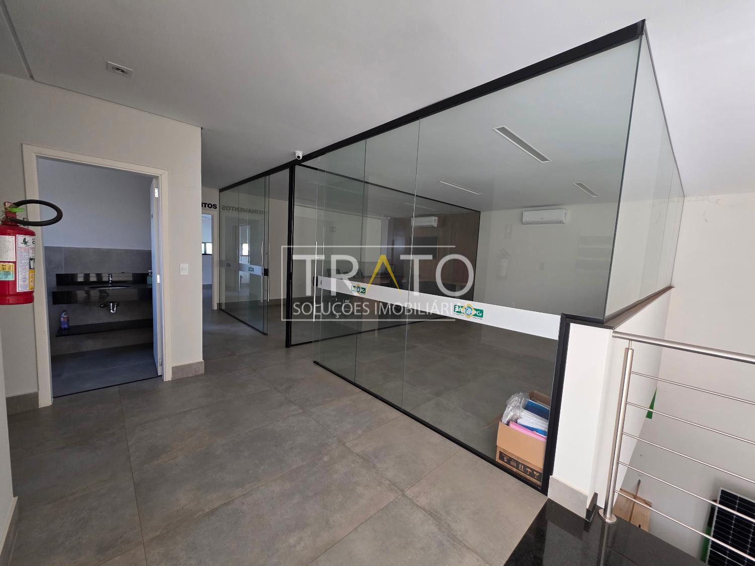 Piso superior, 2 banheiros, 3 salas sendo uma mobiliada, as 3 com ar condicionado, cozinha.