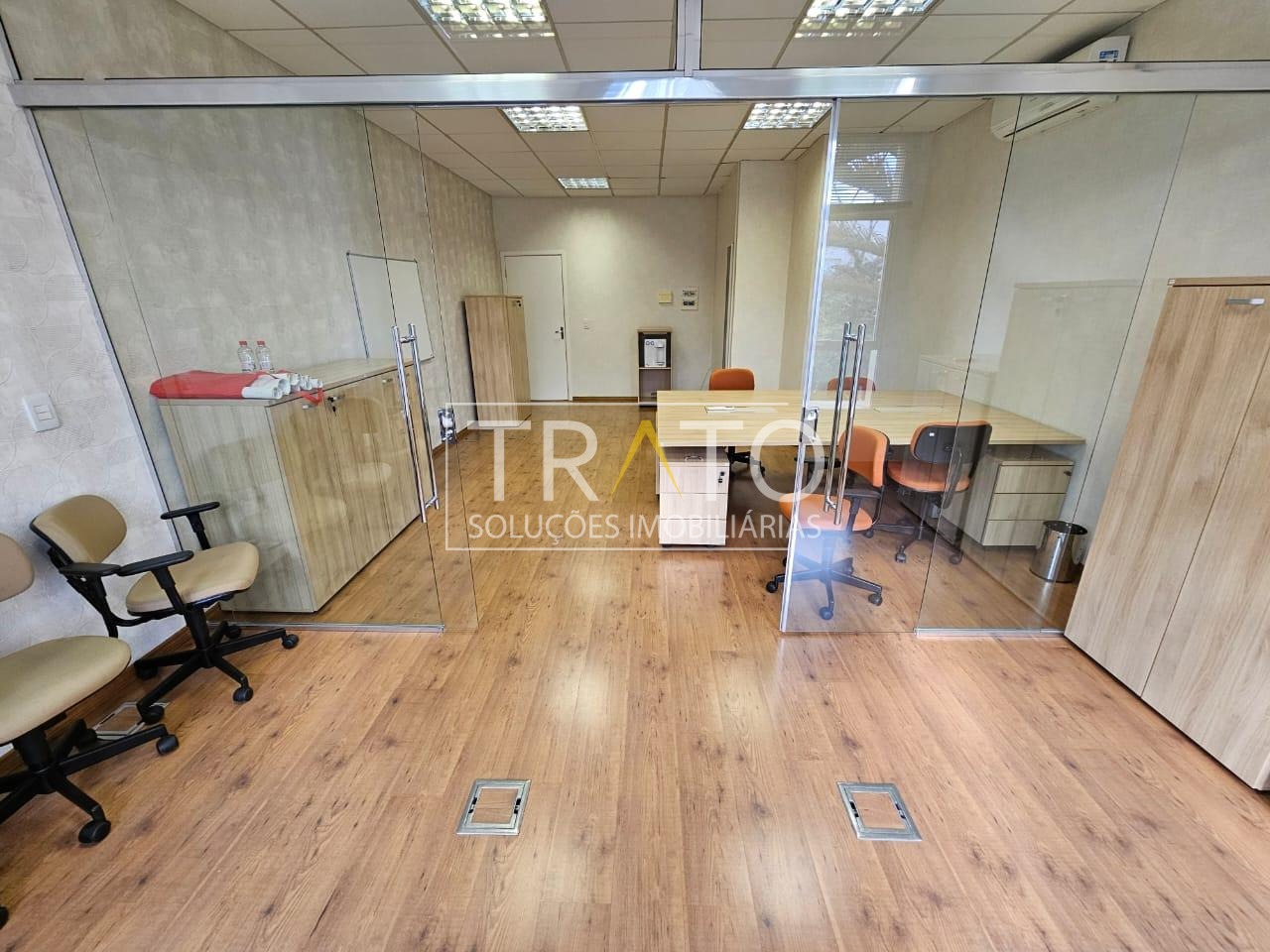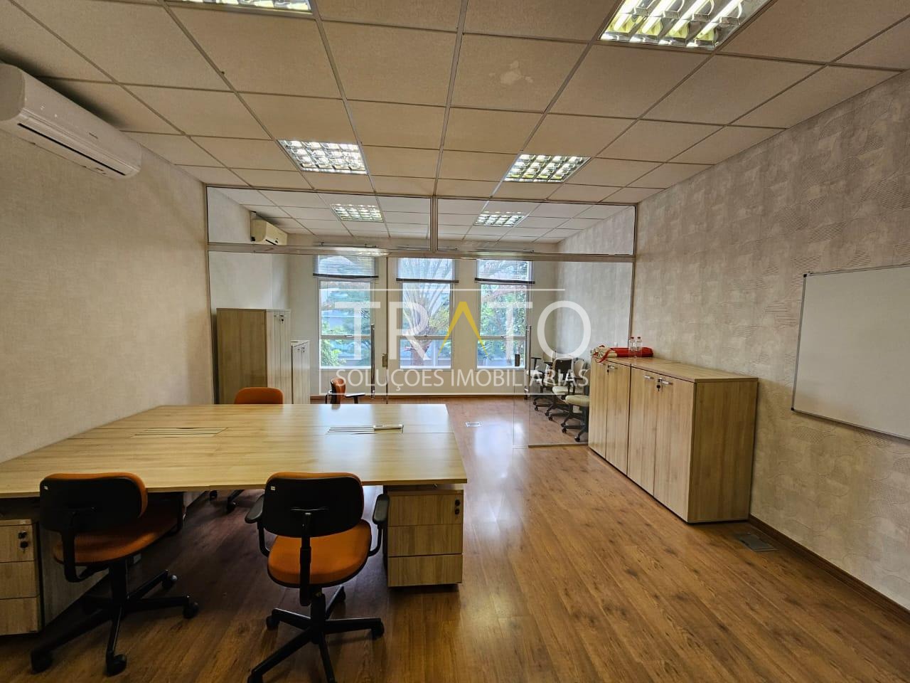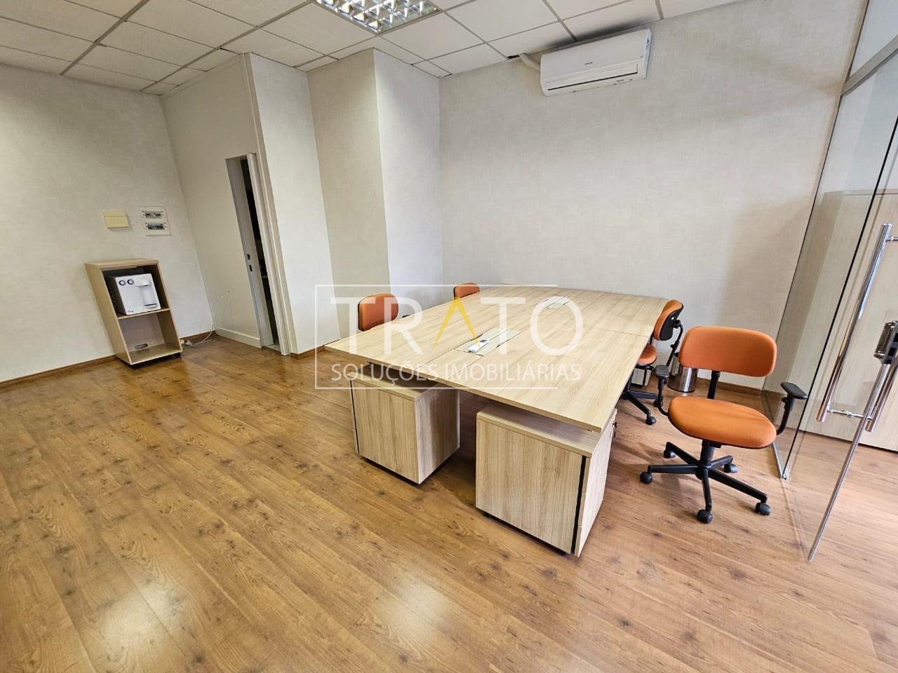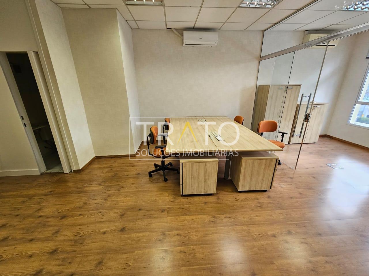 Sala mobiliada, 40m2, com mesas e cadeiras, sala de reunião, com ar condicionado, luminárias, 1 banheiro e 1 vaga de garagem.
